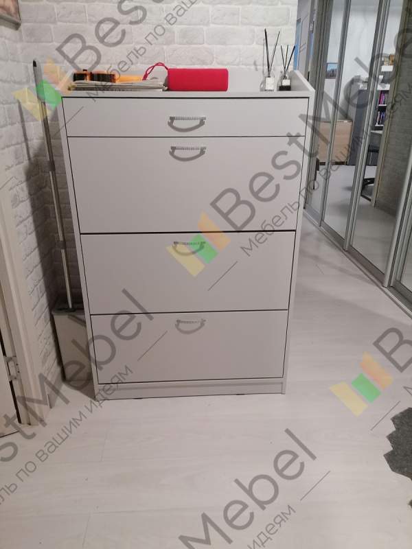 Выбирали галошницу по внешнему виду, вместительности и размерам. Принципиальны были: цвет, ящик для перчаток и бортик (что бы ничего не падало) сверху, и нестандартный размер (мы заказали в размере 900х1250х300). Все заявленые условия смогли выполнить только в компании Bestmebelshop. Галошницу используем 3 месяца. В каждый отсек помещается примерно 10 пар обуви, зимней и больших размеров до 5 пар. Если сделать галошницу 3.1 BMS повыше на 10см, то помещалось бы зимней (большого размера) обуви больше в отсек. Очень удобный и красивый бортик сверху - ничего не падает. Удобно, что можно выбрать любой цвет, можно отдельно корпуса, отдельно фасадов. Мы выбрали цвет молочный дуб и наша галошница идеально вписалась в интерьер. Удобный ящик для перчаток. Оптимальное соотношение цена-качество! Компания Bestmebelshop выполнила все свои обязательства по производству нашего заказа (00000226211): качественные материалы и фурнитура, доставка в срок. Собирали сами-всего хватило. Очень довольны! Сейчас ждём, когда привезут наш новый заказ!