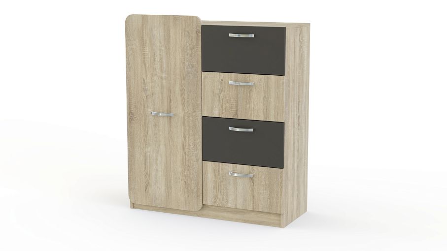 Комод Джасмин BMS выполнен из экологичных материалов и гармонично дополнит интерьер современной детской комнаты. Компактная, но вместительная модель оборудована четырьмя выдвижными ящиками и распашным отделением, в которых разместятся белье, игрушки, аксессуары и прочие вещи ребенка. Фасады светлых тонов под массив дерева с цветными вставками декорированы крупными оригинальными ручками. Купить комод Джасмин BMS вы сможете в нашем интернет-магазине, подобрав оптимальный вариант расцветки.