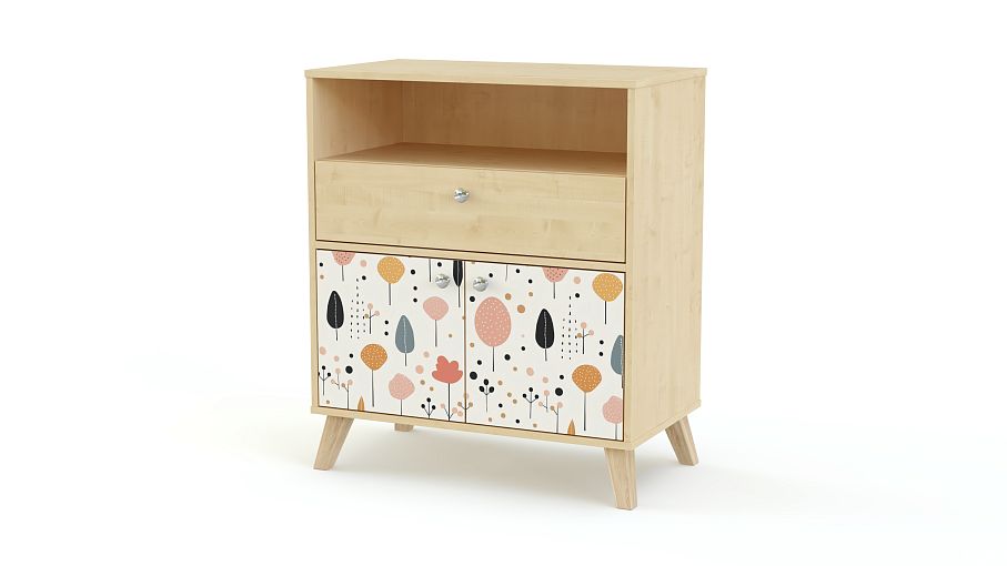Комод Эльза 14 BMS — небольшой, но очень вместительный, отлично подходит для детских интерьеров. Глубокая ниша, выдвижной ящик и отделение с двумя дверцами помогут каждой вещи найти свое место, а на столешницу можно посадить любимую мягкую игрушку или поставить ночник. Простой и функциональный дизайн в стиле сканди оживляет пастельный рисунок-фотопечать. Купить комод Эльза 14 BMS в любом размере и оттенке из каталога приглашаем на сайт нашего интернет-магазина.