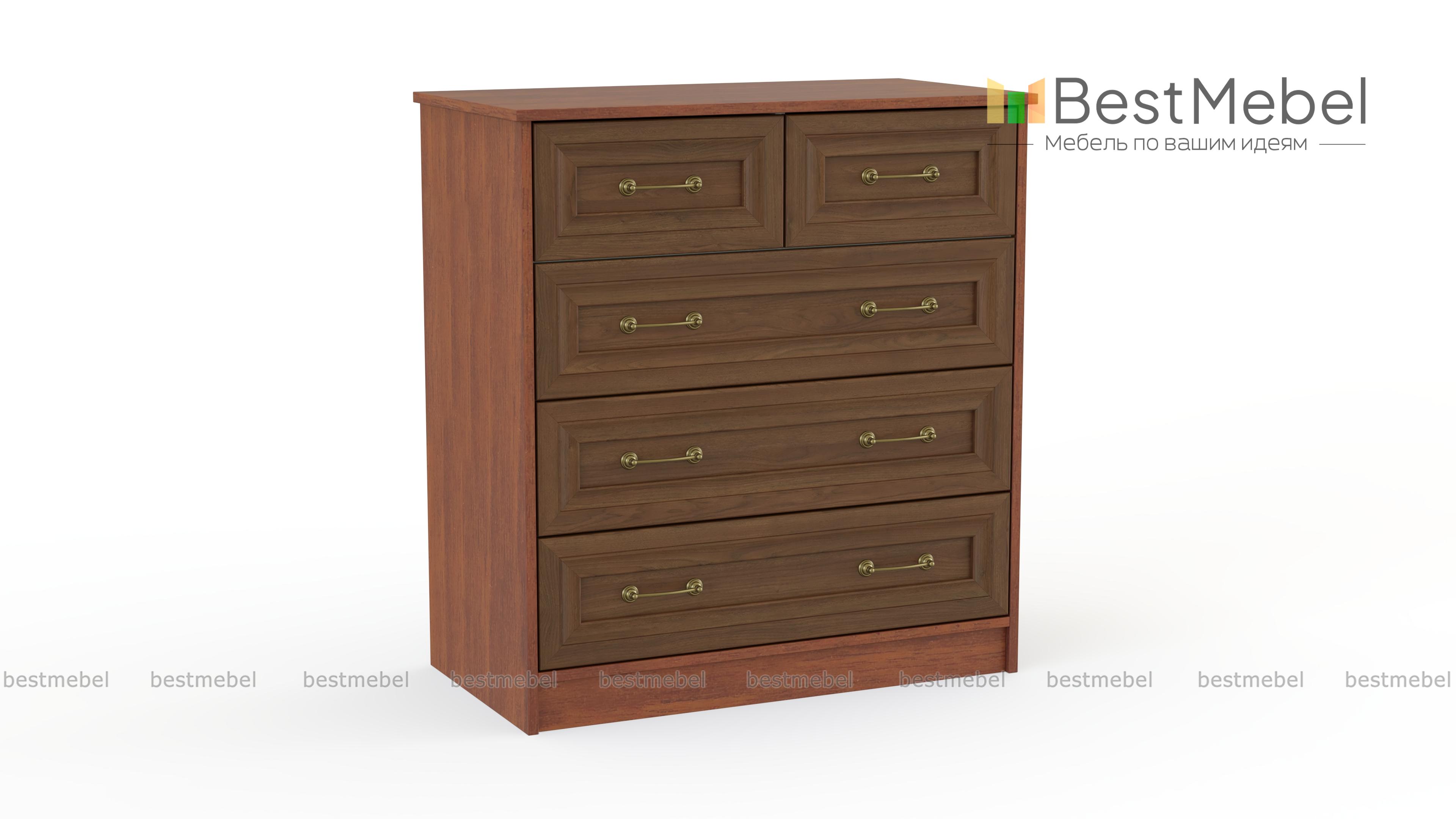 Красивая модель классического комода, изготовленного из современных материалов. Комод Ричард 0, 42 имеет три больших выдвижных ящика для постельного белья, домашних и личных вещей и два маленьких ящика для мелких предметов туалета. Особо привлекательно выглядят оригинальные стильные ручки, а поверхность комода можно декорировать различными предметами или использовать в качестве подставки под аппаратуру. Купить данную модель можно для гостиной, спальни, прихожей.
