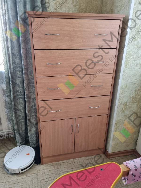 Всем доброго времени суток! Случайно наткнулся на этот комод и эту компанию во время поиска мебели в интернете, искал себе что-то похожее на "шкаф-комод". Очень зацепило, то что прямо на сайте можно выбирать многие размеры и параметры мебели. А в 3D режиме смотришь как будет выглядит мебель в разных расцветках. Определился с размерами и параметрами, разместил Заказ 00000353924. Через 10 минут со мной уже связался менеджер, уточнил параметры которые я немного изменил, уточнил адрес и уже назначил доставку на 4 день, что меня очень удивило, так как мебель под индивидуальные параметры обычно изготавливается гораздо дольше. Доставка до подъезда бесплатная, что очень тоже порадовало.Теперь о негативном.1. Негатив начинается уже со сборки. Отсутствует схема сборки, в моем случае был только чертеж, без каких либо параметров(просто картинка мебели). Но наклейки на каждой детали мебели, компенсируют отсутствие схемы.2. "Пакет с фурнитурой" - это конечно прикол... все саморезы(разных размеров), винты, гвозди и тд, всё это в одной куче, я уже не говорю о том что нигде не указано, какой и куда предназначается, но то что при сборке теряешь до 30 минут времени что бы перебрать всю фурнитуру по кучкам и по пакетикам, что бы облегчить потом поиски при сборке... Ну неужели пакетики такие дорогие, что бы разделить это всё?После завершения сборки мебели, в моём варианте исполнения, обнаружилось несколько проблем.1. Так, как я заказал с изменением конструкции, со шкафом в верхней части комода и общая высота 1650, от веса начали разъезжаться стойки на 1-2мм в сторону, из-за чего начали выпадать из рельс центральные выдвижные ящики. Спустя 1.5-2 недели, мне бесплатно довезли две царги для стяжки, которые я установил в центральную часть комода и проблема ушла.2. Заказал два выдвижных ящика с дополнительными разделёнными ячейками(6 ячеек). Их можно выбрать прямо с сайта, во время конфигурации мебели. Две дальние ячейки практически не доступны, так как ящик выдвигается не до конца, остается доступ к ячейкам в 3-4 сантиметра. Считаю это технический недочет проектировщиков. Что бы это исправить мне предложили либо переделать полностью ящики за мой счёт с немного другим расположением ячеек, либо докупить специальные направляющие с полным выдвижением. Тут я конечно удивился, что этот косяк повесили на меня. Потому что на сайте нет ни какой информации, схем и чертежей на этот счет, как это будет выглядеть изначально не мог знать и даже не предполагал что такое может быть. Ящики так и остались неисправленными, пользуюсь пока так.3. Дверцы шкафчика. После регулировки, с каждой стороны имелся зазор почти в 5мм, что очень выглядело нелепо. Щели такие что можно было разглядеть содержимое шкафа. Долго спорил с гарантийным отделов, в итоге признали гарантийным случаем и поменяли дверцы бесплатно. Новые дверцы, каждая шире на 2-2.5мм, в итоге отрегулировал на стандартный зазор в 3мм.4. Пол шкафчика. На чертеже не разглядел, что он утопленный, по отношению фасада выдвижных ящиков и шкафчика дверей, а фасад не укрывает эту щель. Это смотрелось очень не красиво, в связи с этим мне пришлось докупать отдельно эту деталь, которая стоила дополнительно 850р. Косяк признали за мной, так как я не разглядел чертеж, несмотря на то, что на сайте выглядит это по другому.Так же забыли положить подпятники, но их довезли вмес