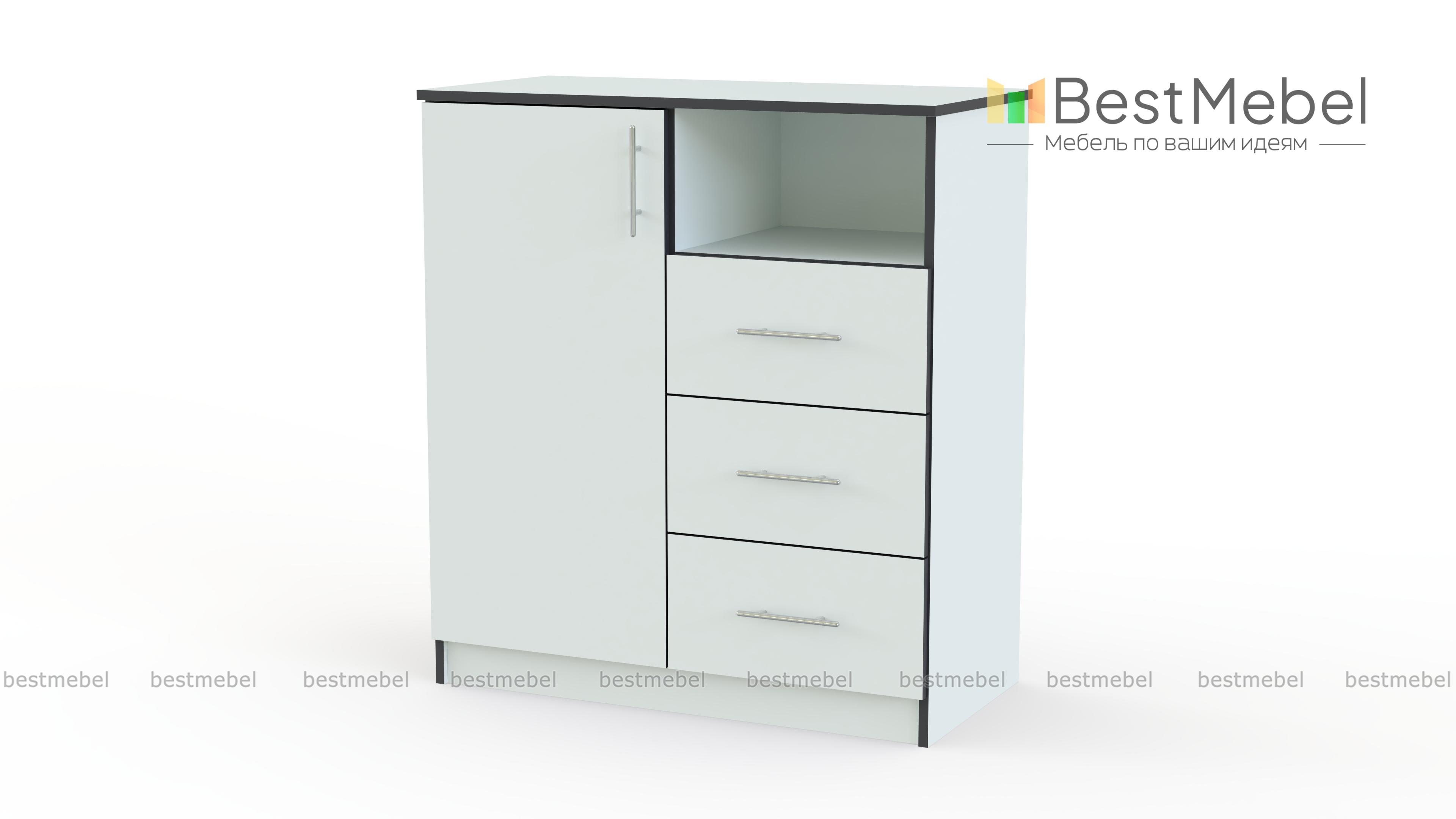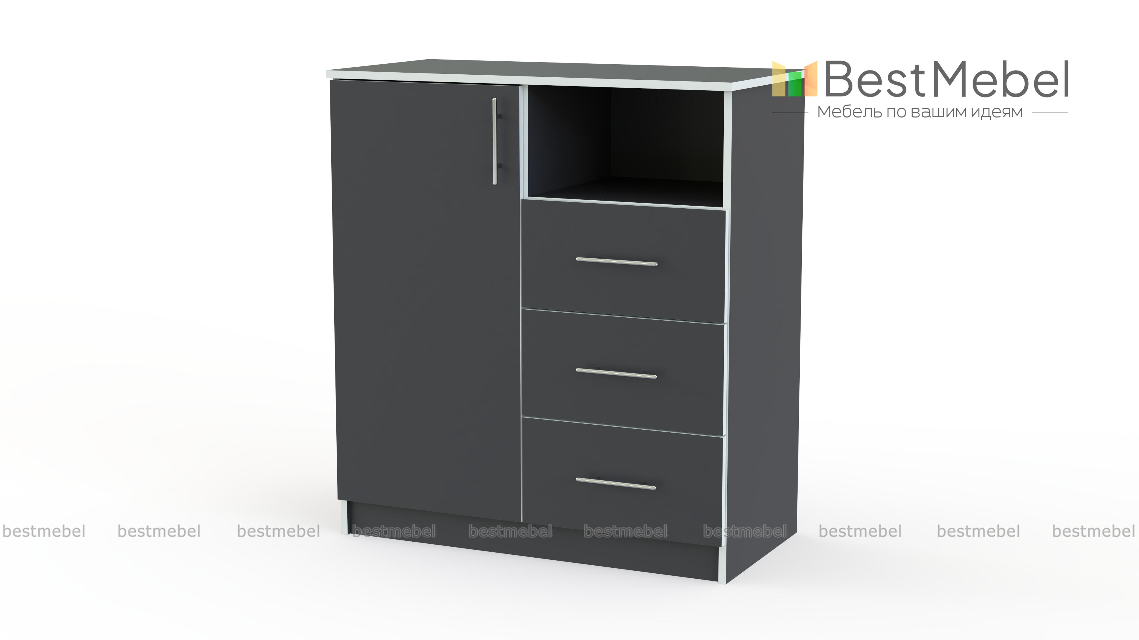 Комод Рио BMS добавит Вашему помещению некую изюминку, а также заменит небольшой шкаф. Комод совмещается просторной тумбой и открытой полкой. В изделие можно расположить предметы необходимого пользования, личные вещи. Столешница тумбы может послужить для установки небольшой плазмы или элементов декора. Комод снабжён бесшумными механизмами и стильной фурнитурой. Понравилась модель комода? Предлагаем на Ваш выбор цвета и габариты изделия. Купить комод Рио BMS можно в нашем Интернет-магазине по низкой цене.