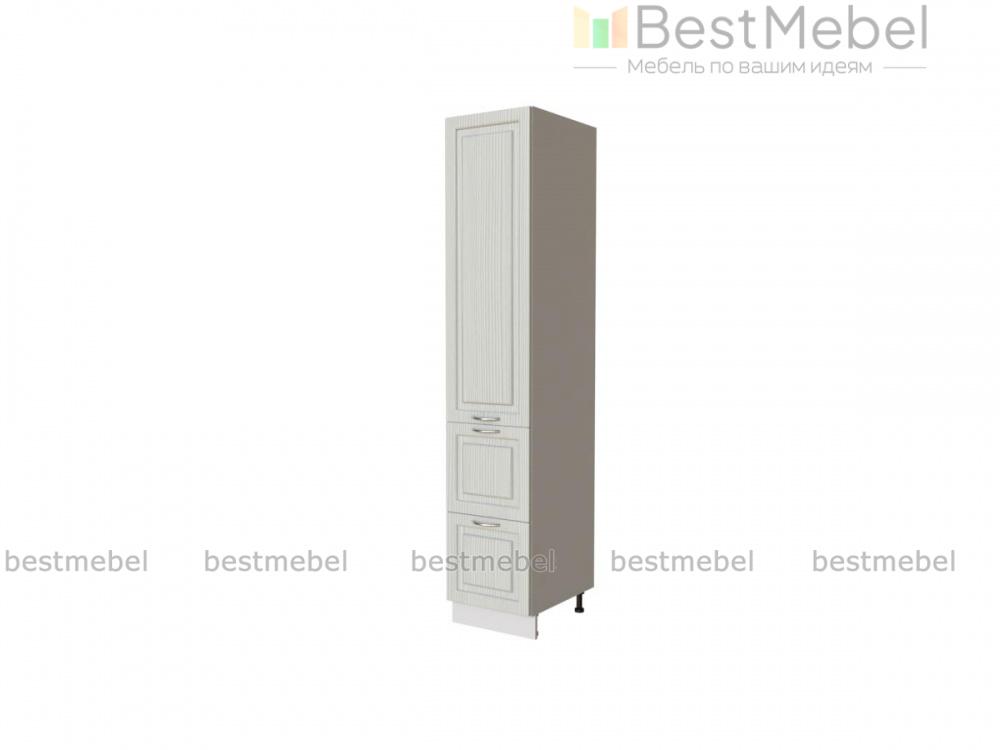 Пенал Гарда с ящиками BMS – практичная система хранения и интересный акцент в интерьере современной кухни. Высокий пенал оборудован двумя глубокими выдвижными ящиками в основании и распашным отделением с полками, в которых смогут разместиться посуда для готовки, продуктовые запасы, а также разнообразные кухонные аксессуары. Фрезерованные фасады с имитацией текстуры камня дополнены лаконичными хромированными ручками-скобами. Купить пенал Гарда с ящиками BMS приглашаем недорого в наш интернет-магазин.