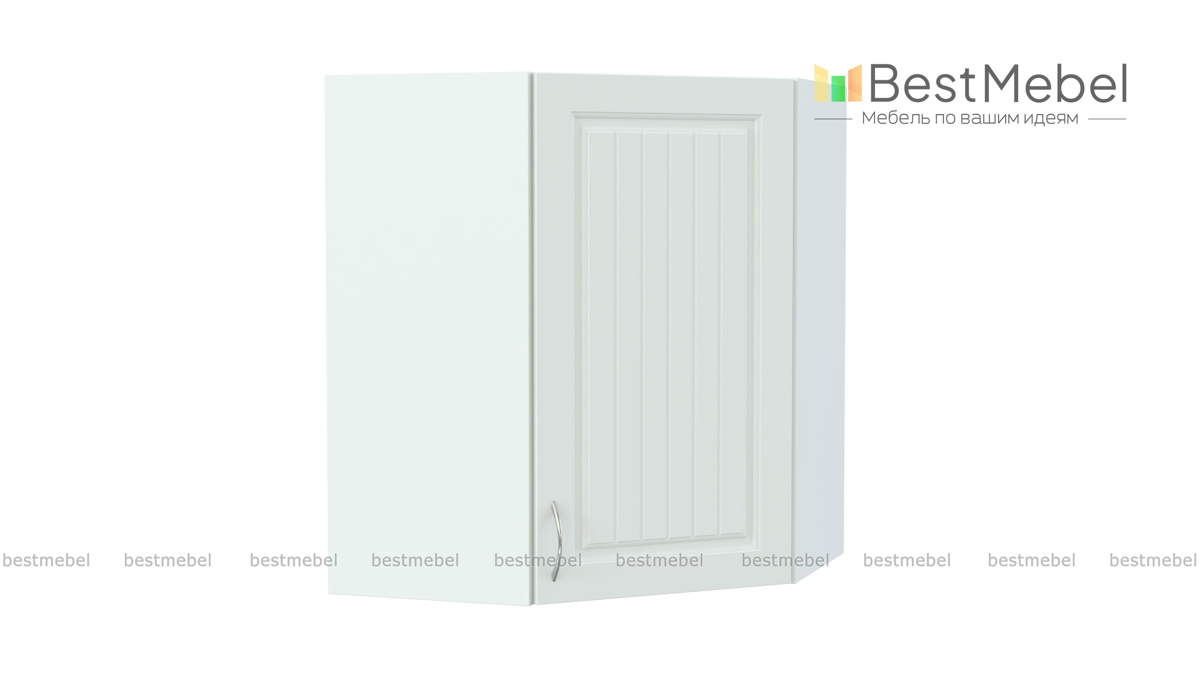 Шкаф навесной угловой Николь BMS выполнен в форме трапеции и отличается вместительностью и функциональностью. Модель выгодно использует угловое пространство кухни и предназначена для стыковки боковых модулей верхнего ряда. За распашной дверцей находится внутреннее отделение с полкой для хранения продуктов и кухонных аксессуаров. Фасады светлых тонов с фрезеровкой и ручкой под серебро станут частью элегантного комплекта в стиле кантри. Купить шкаф навесной угловой Николь BMS вы сможете по лучшей цене в нашем интернет-магазине.