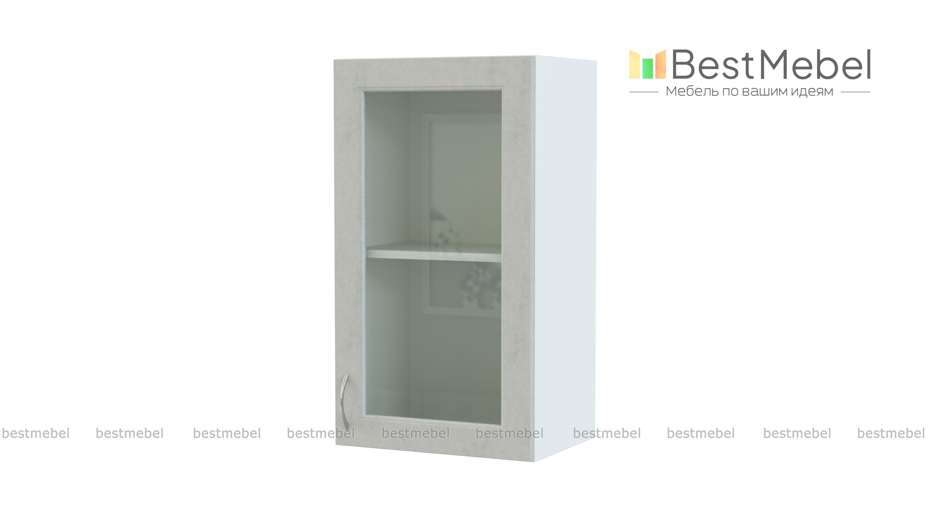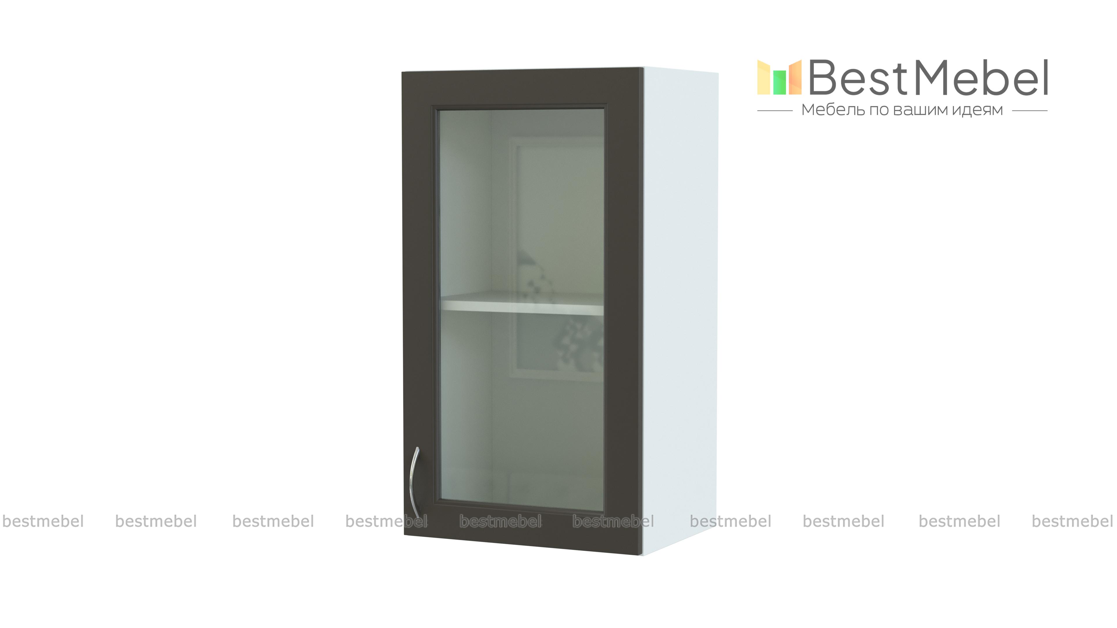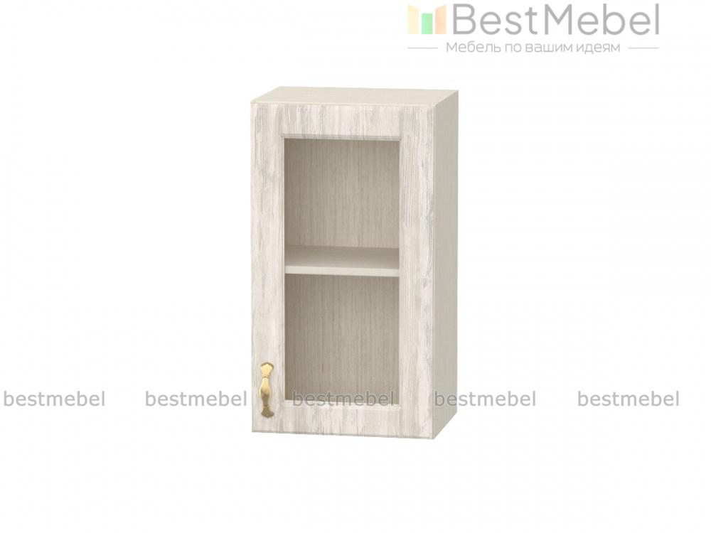 Шкаф-витрина Николь 1 дверь BMS может стать частью мебельного гарнитура или использоваться отдельно. Светлый фасад со стеклянной вставкой, украшенной фрезеровкой, и изящной ручкой под серебро будет гармонично сочетаться с кухонным интерьером в стиле кантри. За распашной дверцей располагается полка, удобная для хранения посуды и продуктов – чая, кофе, специй. Купить шкаф-витрину Николь 1 дверь BMS, компактную и эффектную, приглашаем в наш интернет-магазин.