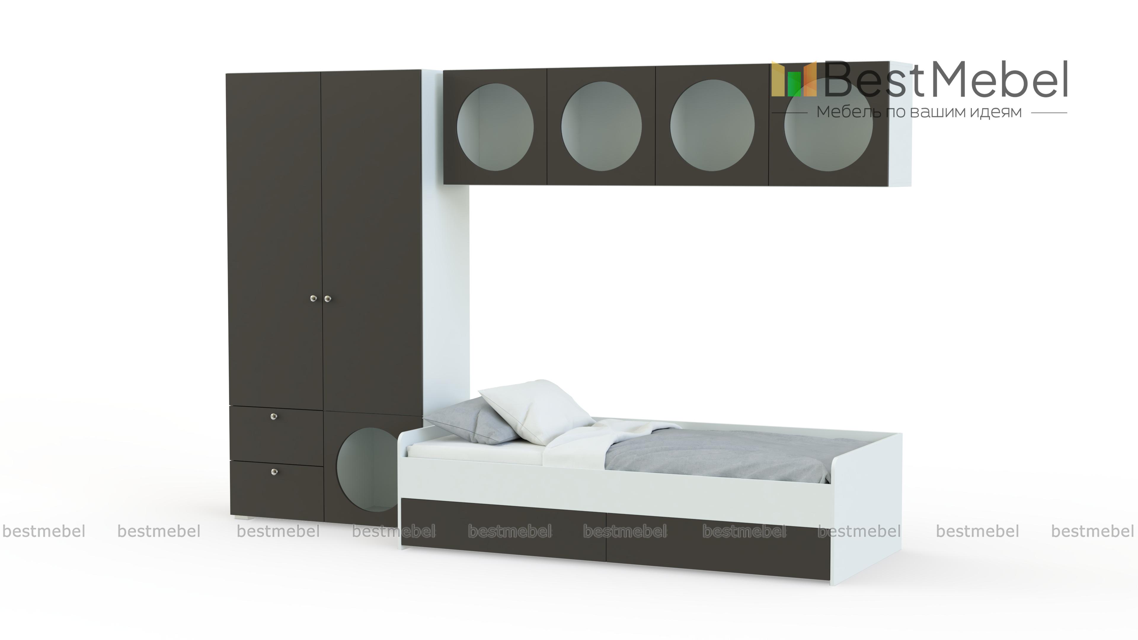 Детская комната Авелин 2 BMS позволит создать хорошо продуманный интерьер с оригинальными деталями. Двухдверный гардероб и подвесные полки обеспечивают достаточно места для хранения одежды, обуви и личных вещей ребенка, а удобная кровать с выкатными ящиками подарит здоровый сон ночью и отдых в дневное время. Дети и подростки точно оценят просторные полки с необычными круглыми вырезами. Купить детскую комнату Авелин 2 BMS приглашаем в наш интернет-магазин с изготовлением по индивидуальным размерам.