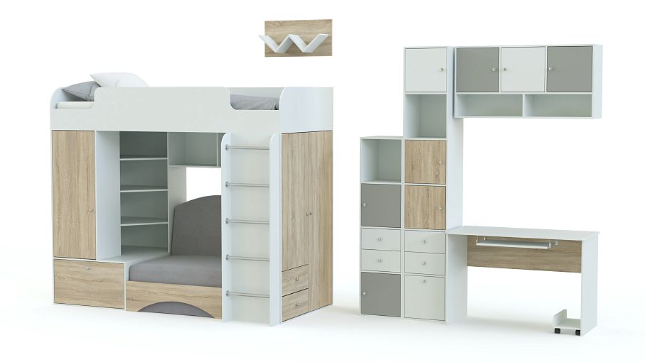 Детская мебель Тетрис-1 модульная BMS порадует детей и родителей ярким современным дизайном, функциональностью и оригинальной конструкцией, которая позволит организовать удобное для учебы и досуга пространство. В комплекте многофункциональный модуль с кроватью-чердаком, диванным блоком, встроенными шкафами и открытыми полками, письменный стол, стеллаж и навесные полки. Цветовое решение – светлые тона с цветными вставками, оптимально для детских комнат. Купить детскую мебель Тетрис-1 модульную BMS вы сможете в нашем интернет-магазине по отличной цене.