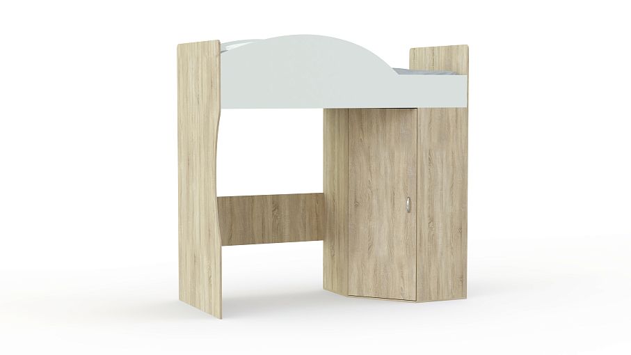 Кровать-чердак угловая Калейдоскоп 3 BMS представляет собой практичную комбинацию комфортного спального места и удобной системы хранения. Кровать второго яруса со скругленными защитными бортиками дополнена находящейся в нижней части просторной нишей и угловым распашным шкафом. Особенно просторный за счет трапециевидной формы, шкаф оборудован отделением со штангой и бельевыми полками. В оформлении сочетаются светлые древесные поверхности и белые элементы. Купить кровать-чердак угловую Калейдоскоп 3 BMS приглашаем в наш интернет-магазин.