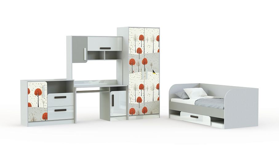 Детская комната Молодежная Фантазия BMS – стильный комплект для комнаты современного подростка. Входящие в набор модули отличаются лаконичностью форм и модным минималистичным дизайном. В комплекте двухдверный шкаф для одежды, кровать с выдвижным ящиком, письменный стол и комод. Корпус элементов выполнен в светлых тонах, фасады – контрастное сочетание нейтральных оттенков и фотопечати. Углы ящиков, декорированных крупными ручками, оригинально закруглены. Купить детскую комнату Молодежная Фантазия BMS по доступной цене приглашаем в наш интернет-магазин.