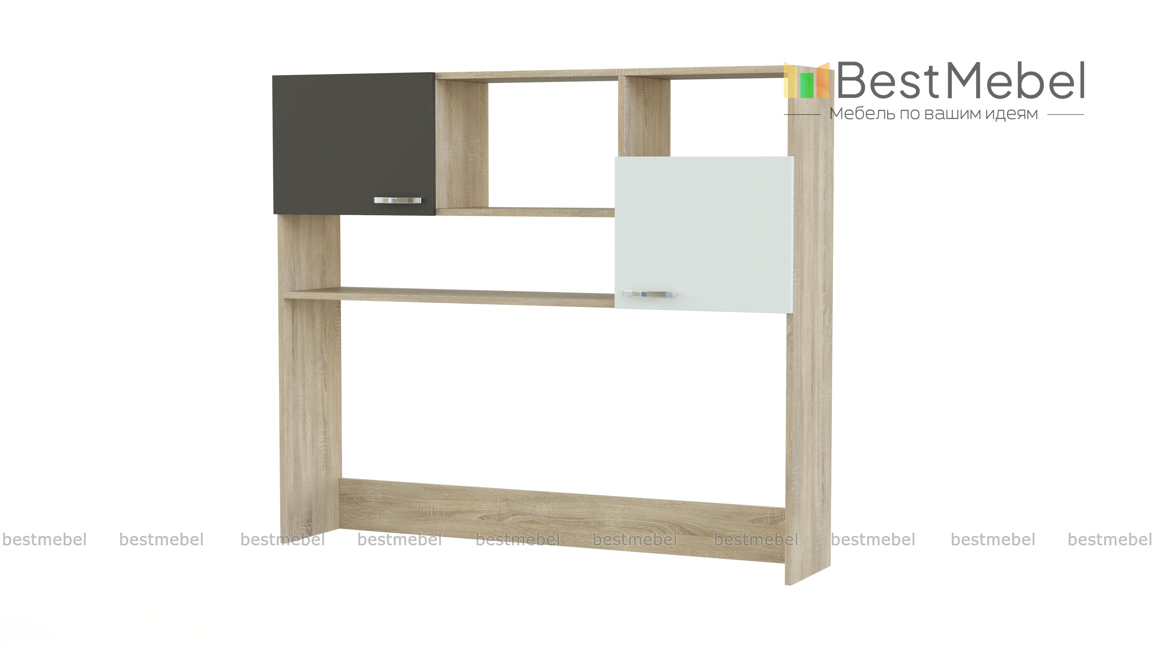 Полка Китти BMS гармонично впишется в интерьер современной детской и сделает более функциональной рабочую зону. Практичная надстройка для стола поможет разместить под рукой книги, принадлежности для учебы и творчества, декоративные мелочи. Полка выполнена из экологичных материалов в сером и графитовом цвете и оборудована двумя глухими распашными шкафчиками с нежными глянцевыми фасадами и нишами разной высоты. Купить полку Китти BMS приглашаем в наш интернет-магазин по выгодной цене.