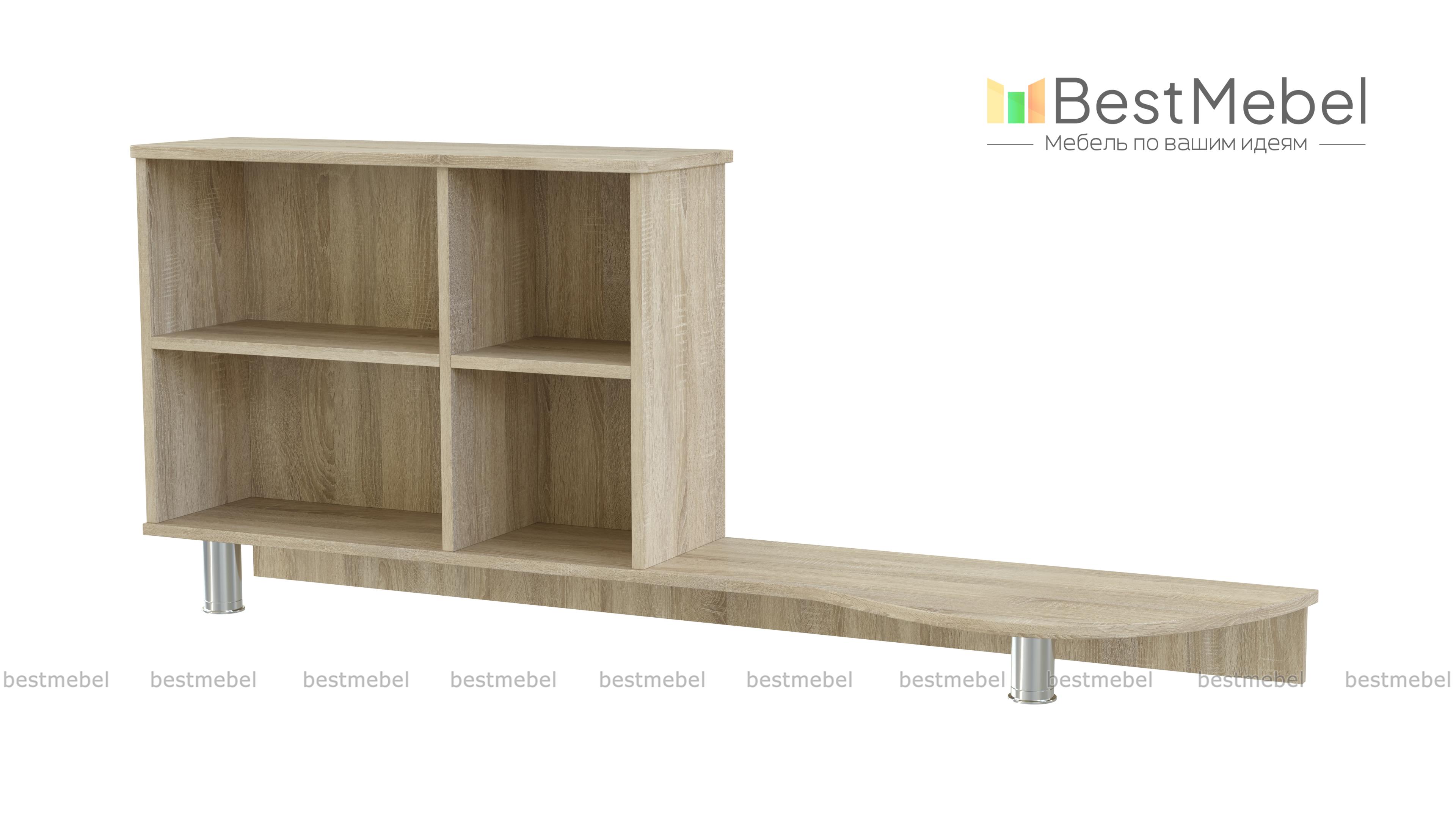 Надставка для стола Ная КН-2 BMS проста в исполнении, удобна в использовании. Наша функциональная конструкция крепится к столу, создавая дополнительную нишу в нижней части. Помимо неё, изделие имеет две свободных поверхности и полки, геометрических фигур. Мебель не отнимает у стола много места и не нарушает освещение. Мы подобрали цвета к изделию на любой вкус покупателя, выбор стоит за Вами. Купить надставку для стола Ная КН-2 BMS можно в мебельном магазине Бэст Мебель по низкой стоимости.