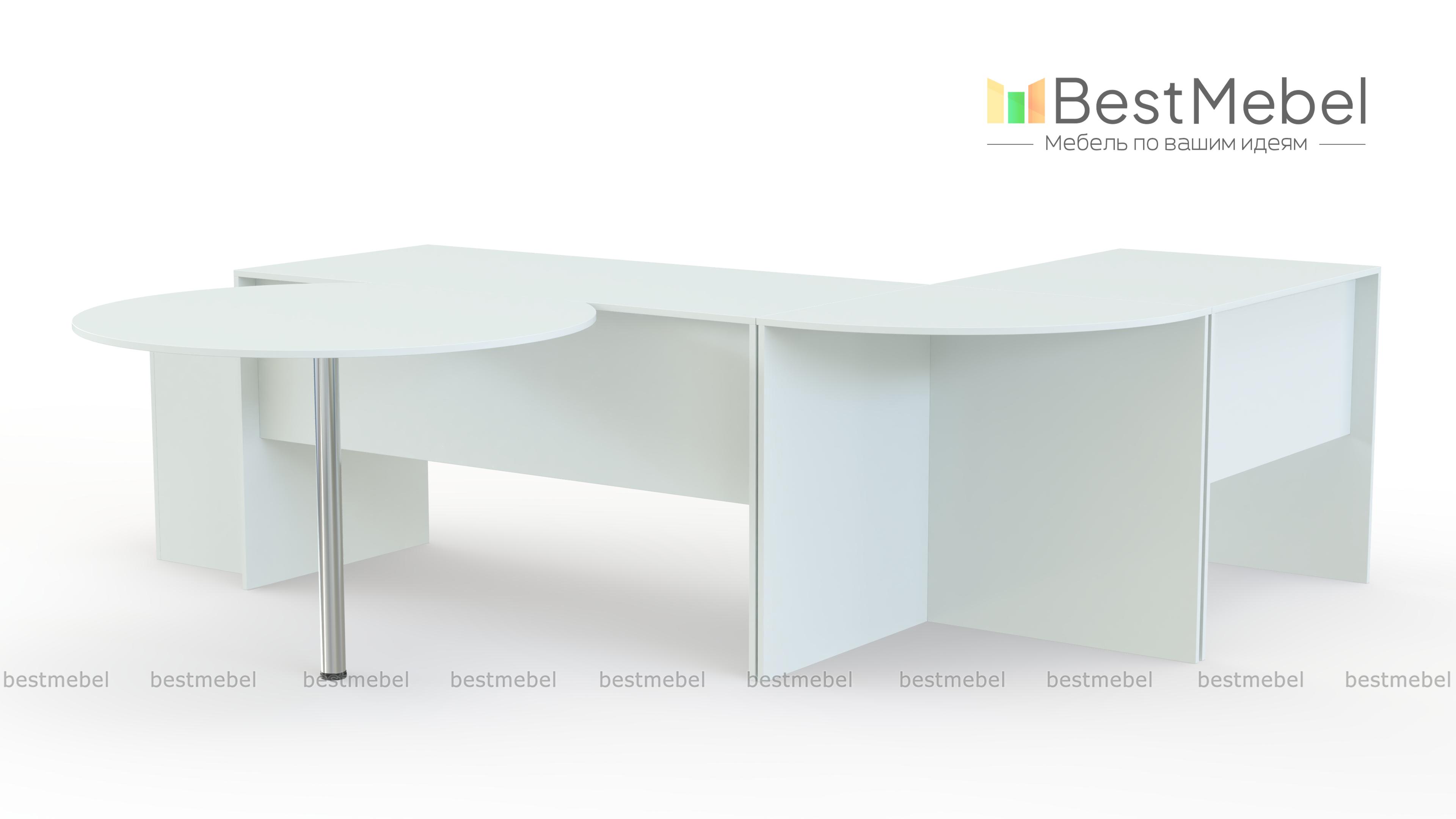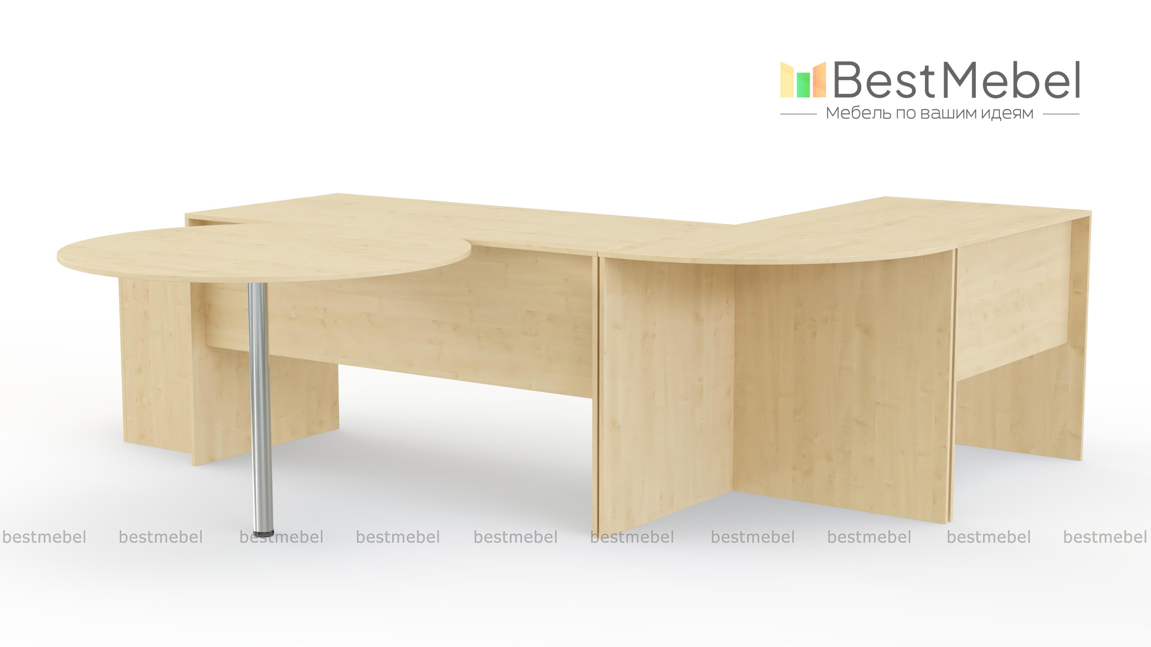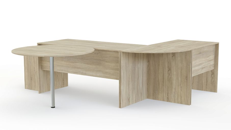 Офисный комплект Uno № 4 BMS – простое и оригинальное решение для кабинета руководителя. Классический прямой письменный стол дополнен тремя приставными – угловым, миниатюрным прямоугольным и круглым на металлической опоре. Продуманная конструкция позволит сделать рабочее совещание максимально комфортным для всех участников. Традиционные древесные оттенки тонов создадут спокойную, деловую обстановку. Купить офисный комплект Uno № 4 BMS по демократичной цене приглашаем в наш интернет-магазин.