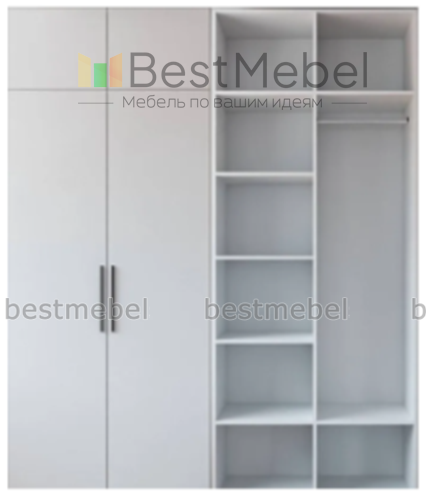 Распашной шкаф Вилета 5 гармонично дополнит интерьер современной квартиры и поможет организовать хранение базового гардероба. Конструкцией предусмотрены как платяное отделение, оборудованное штангой, так и ряд бельевых полок. Дизайн двухдверной модели с удлиненными ручками-скобами на однотонном светлом фасаде отличается стильным минимализмом. Купить шкаф распашной Вилета 5 приглашаем недорого в наш интернет-магазин.