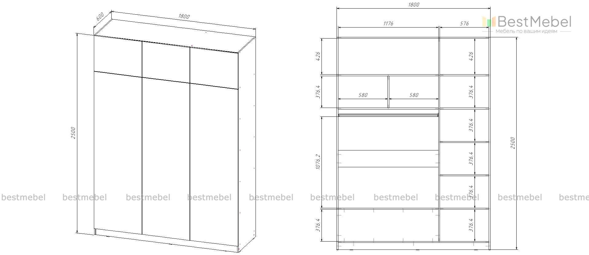 Шкаф распашной Интарс 3А (1800*2500*600)