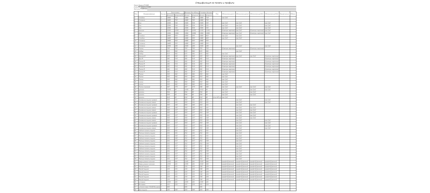 Параметры изделия: