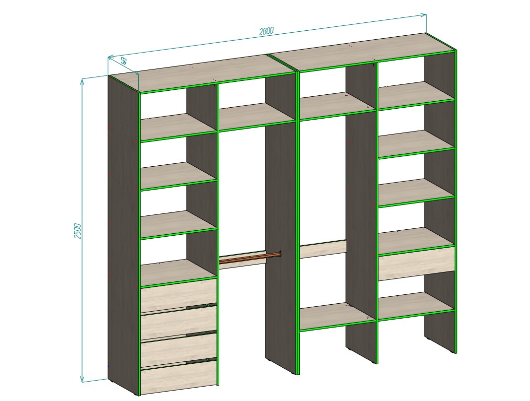 Стеллаж для одежды Мирта 18 BMS поможет вам создать полноценную гардеробную, где у каждой вещи есть свое место. Продуманная компоновка позволяет развесить одежду по типам и сезонности, разместить обувные коробки и убрать мелочи. Три штанги, полки и выдвижные ящики находятся на удобной для ежедневного пользования высоте, учитывая требования эргономики. Ящики на шариковых направляющих.