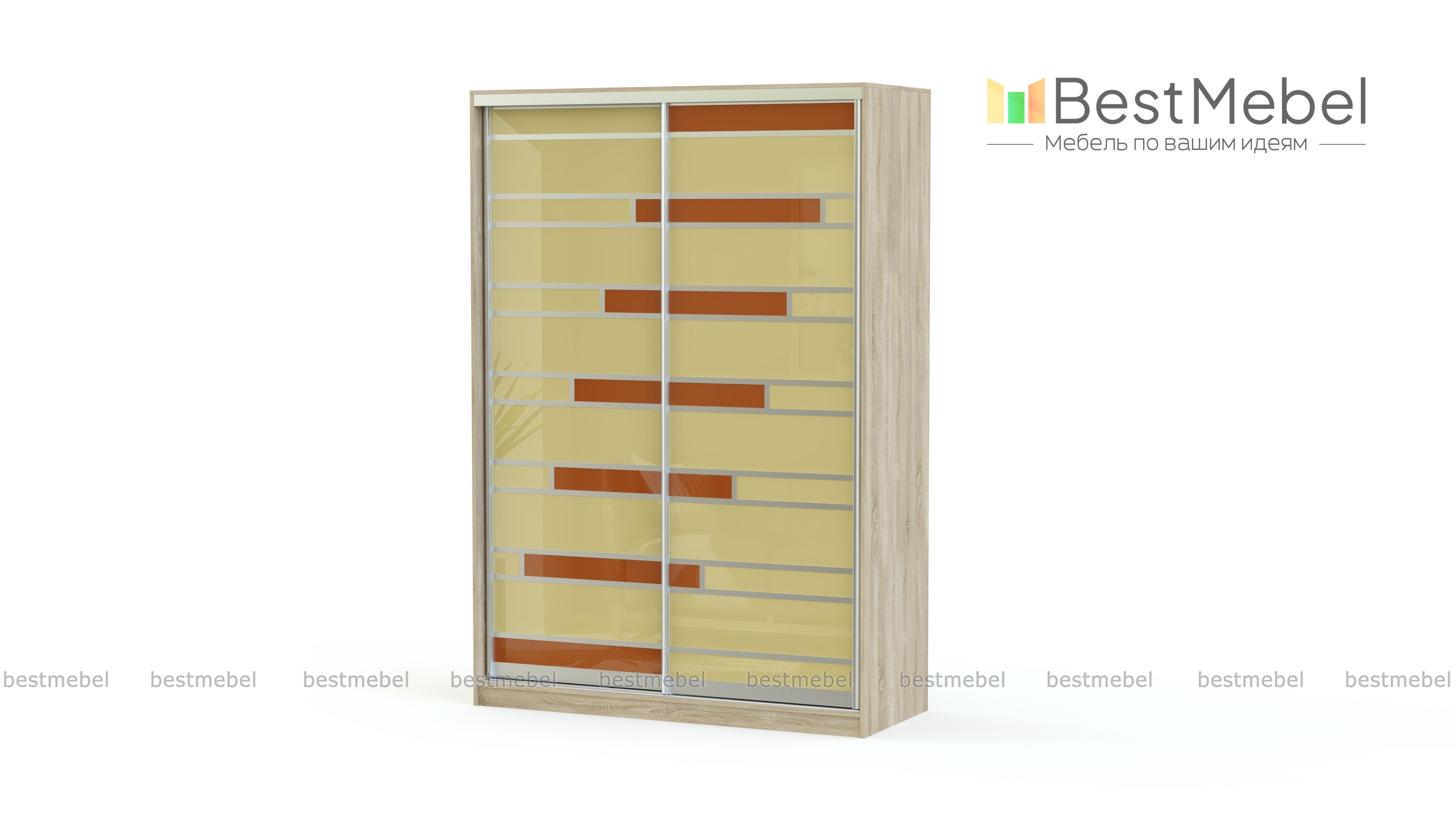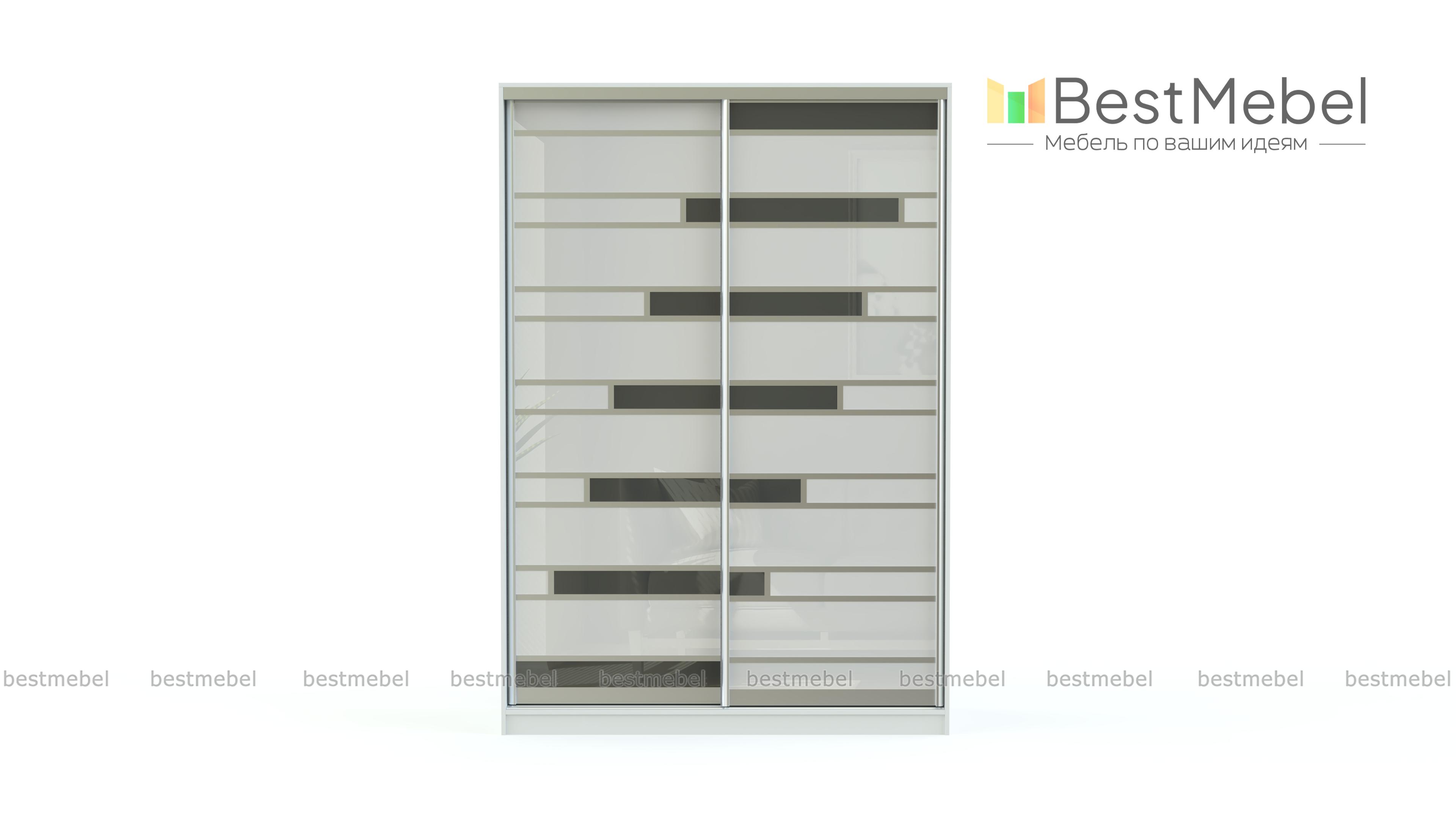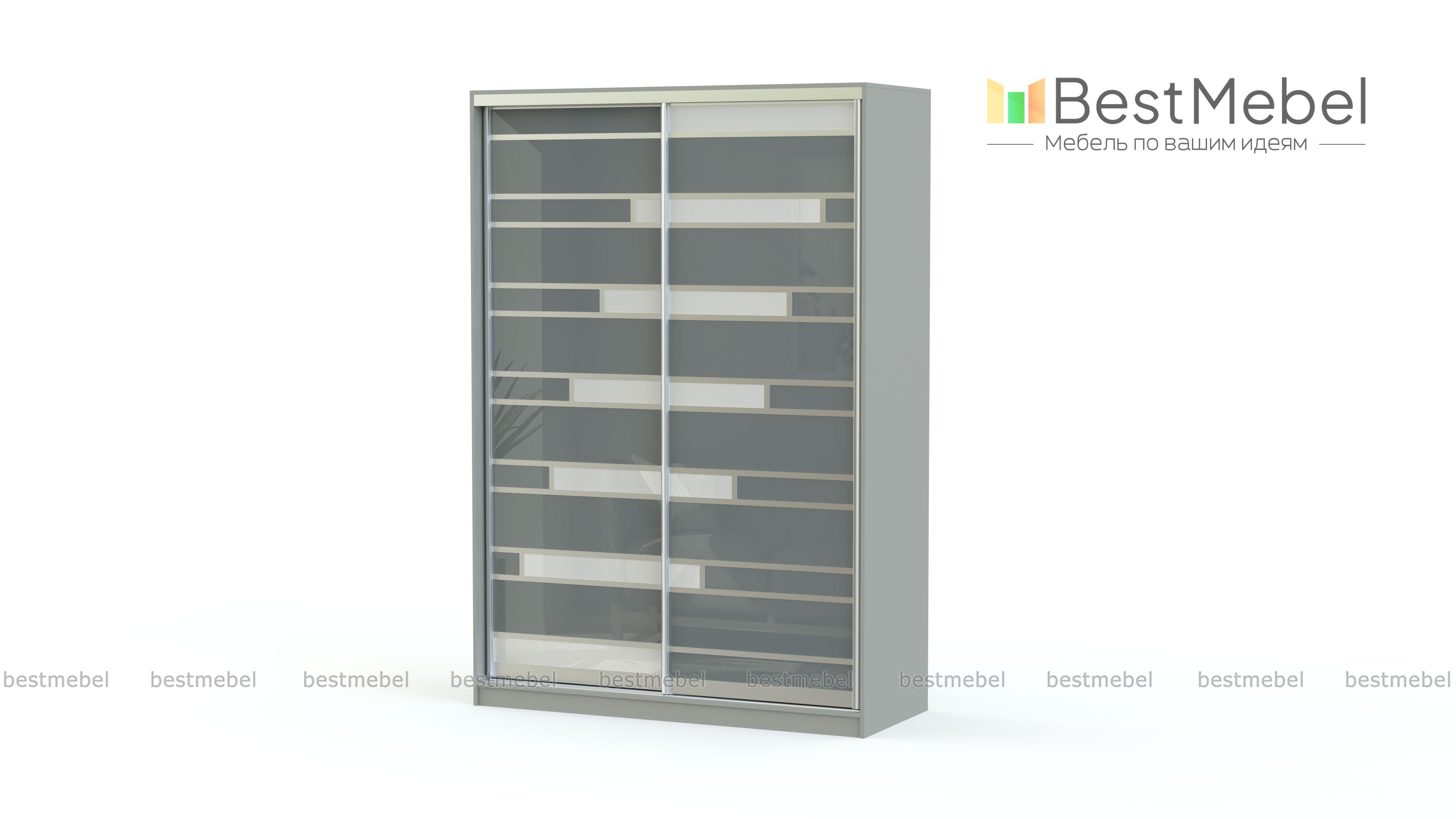 Оригинальный вместительный шкаф-купе Лента BMS с двумя широкими раздвижными дверями поможет не только компактно разместить вещи, но и преобразит интерьер помещения. Каждая дверь оформлена цветным стеклом в комбинации с алюминиевым профилем. Гармоничное сочетание черных и красных полос прочного закаленного стекла создает эффектный внешний вид шкафа. Внутреннее наполнение в традиционном исполнении предусматривает наличие вместительных полок и хромированной штанги для хранения вещей на вешалках.