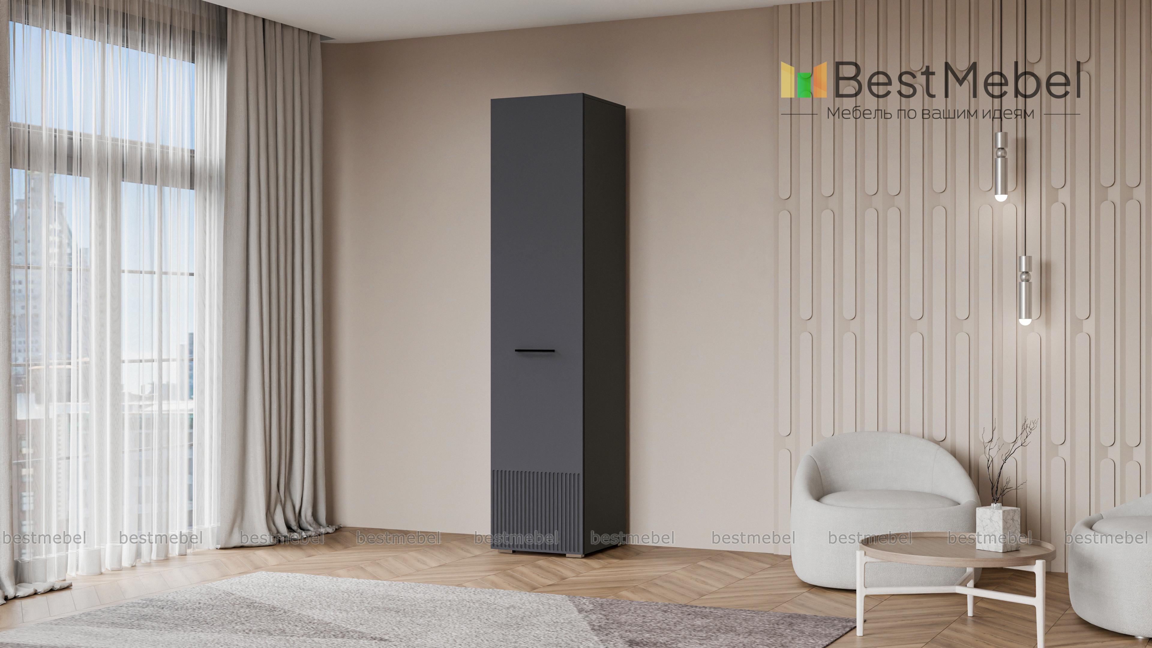 Шкаф распашной Декарт 1 BMS вы сможете использовать отдельно и в сочетании с другими шкафами серии. Пенал в светлом дизайне с фрезерованным декором идеально подходит для компактных комнат. Компоновка с вешалкой и верхней полкой — комфортная база для повседневных вещей, а распашная дверца со стильной ручкой-скобой обеспечивает им отличный обзор. Купить шкаф распашной Декарт 1 BMS приглашаем на сайт нашего интернет-магазина, по желанию изменив цвет и размеры.
