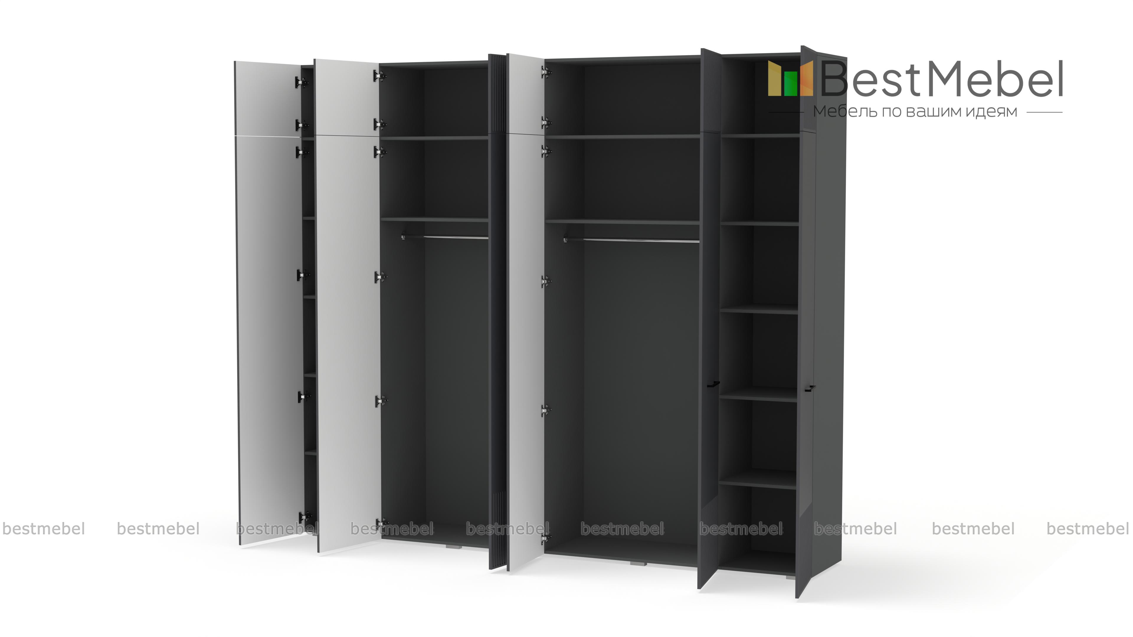 Шкаф распашной Декарт 12 BMS — это вместительный современный гардероб с антресолью. В двух секциях с перекладинами и двух бельевых отделениях можно хранить одежду на вешалках и сложенные вещи, а то, что вы редко используете, убрать на верхние полки. Светлый, рифленый по низу и верху фасад шкафа оснащен стильными поперечными ручками. Купить шкаф распашной Декарт 12 BMS вы сможете на сайте нашего интернет-магазина с изготовлением по индивидуальным размерам.