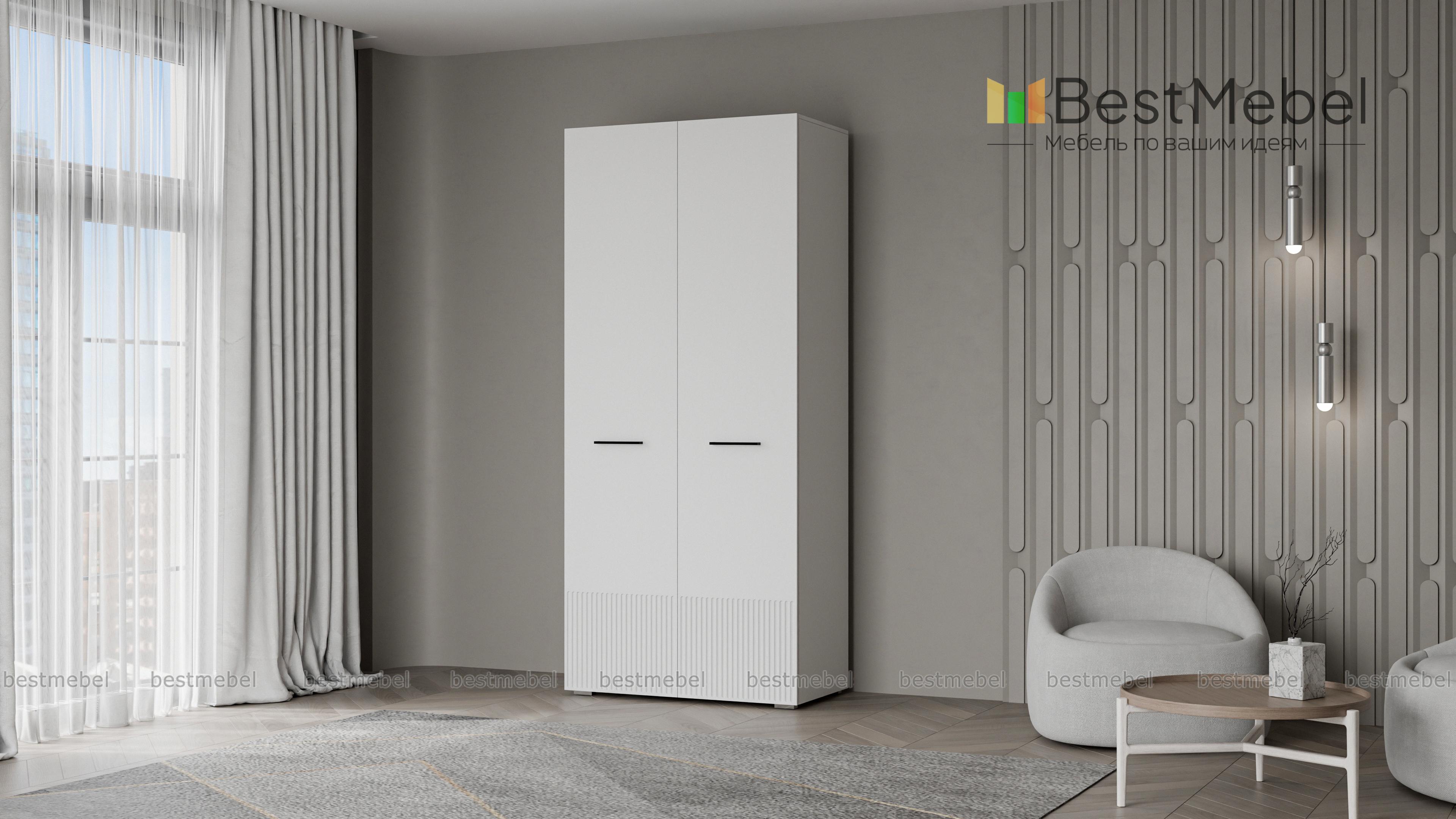 Шкаф распашной Декарт 2 BMS поможет удобно расположить повседневные вещи даже при малом метраже. Система хранения компактной двухдверной модели включает в себя штангу для одежды и расположенную сверху полку для коробок и других габаритных предметов. Фасад в цвет корпуса выполнен из МДФ и оформлен стильным рельефом, поперечные ручки-скобы добавляют стильный акцент. Купить шкаф распашной Декарт 2 BMS в любом размере и оттенке из нашего каталога приглашаем на сайт интернет-магазина.
