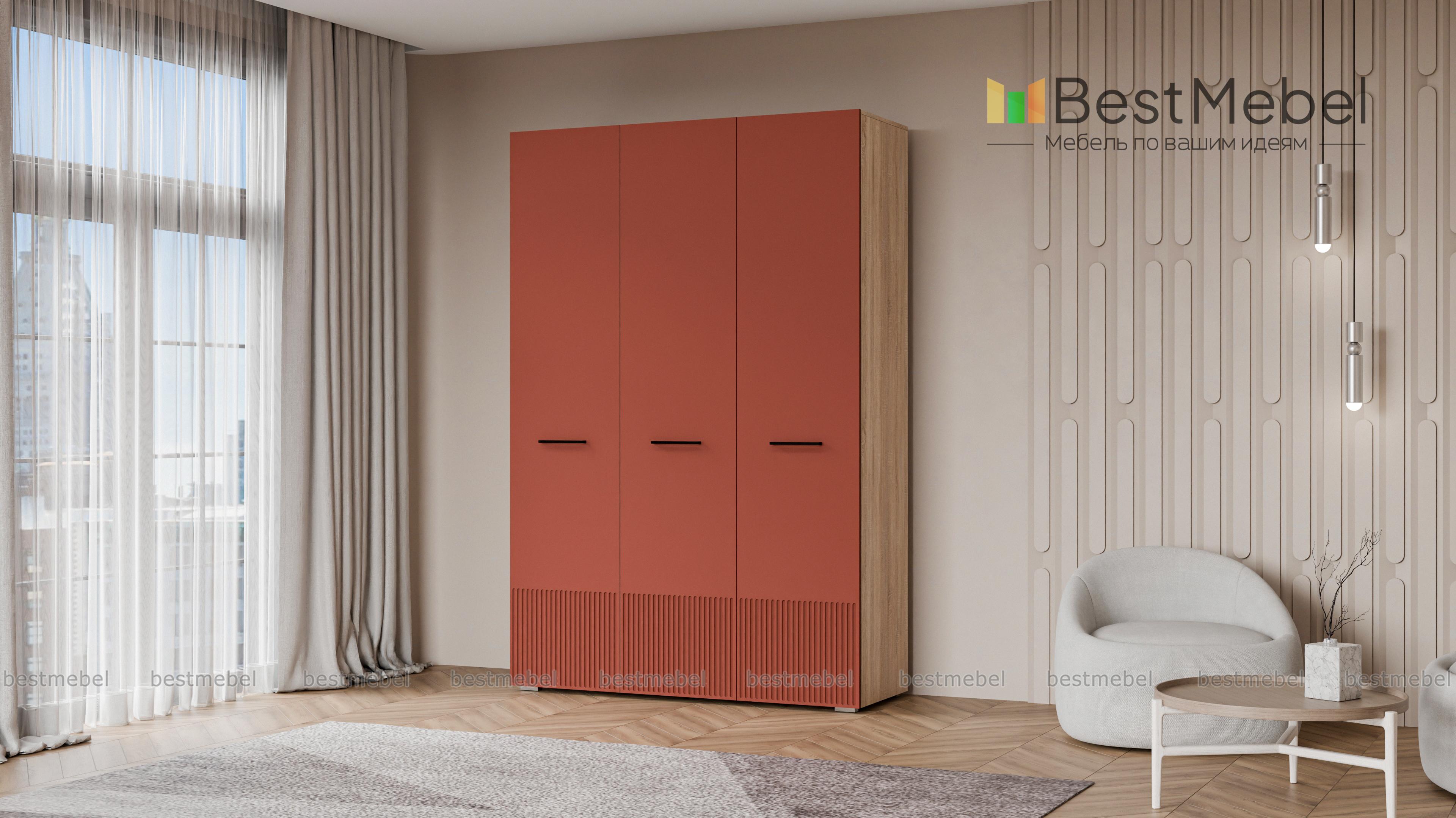Шкаф распашной Декарт 3 BMS сохранит порядок в спальне, детской комнате или входной зоне. За двумя дверцами справа скрыта штанга для одежды, а однодверное отделение слева оборудовано полками. Элегантный фасад с рельефом и оригинальными ручками-скобами хорошо сочетается с разными интерьерами, помогая создать гармоничную обстановку. Купить шкаф распашной Декарт 3 BMS вы сможете в нашем интернет-магазине, самостоятельно подобрав размеры, цвет и наполнение.