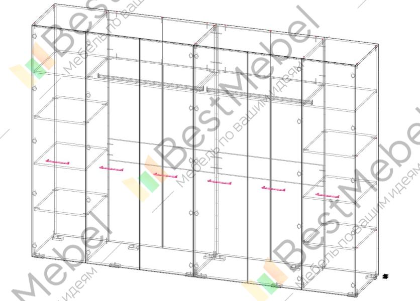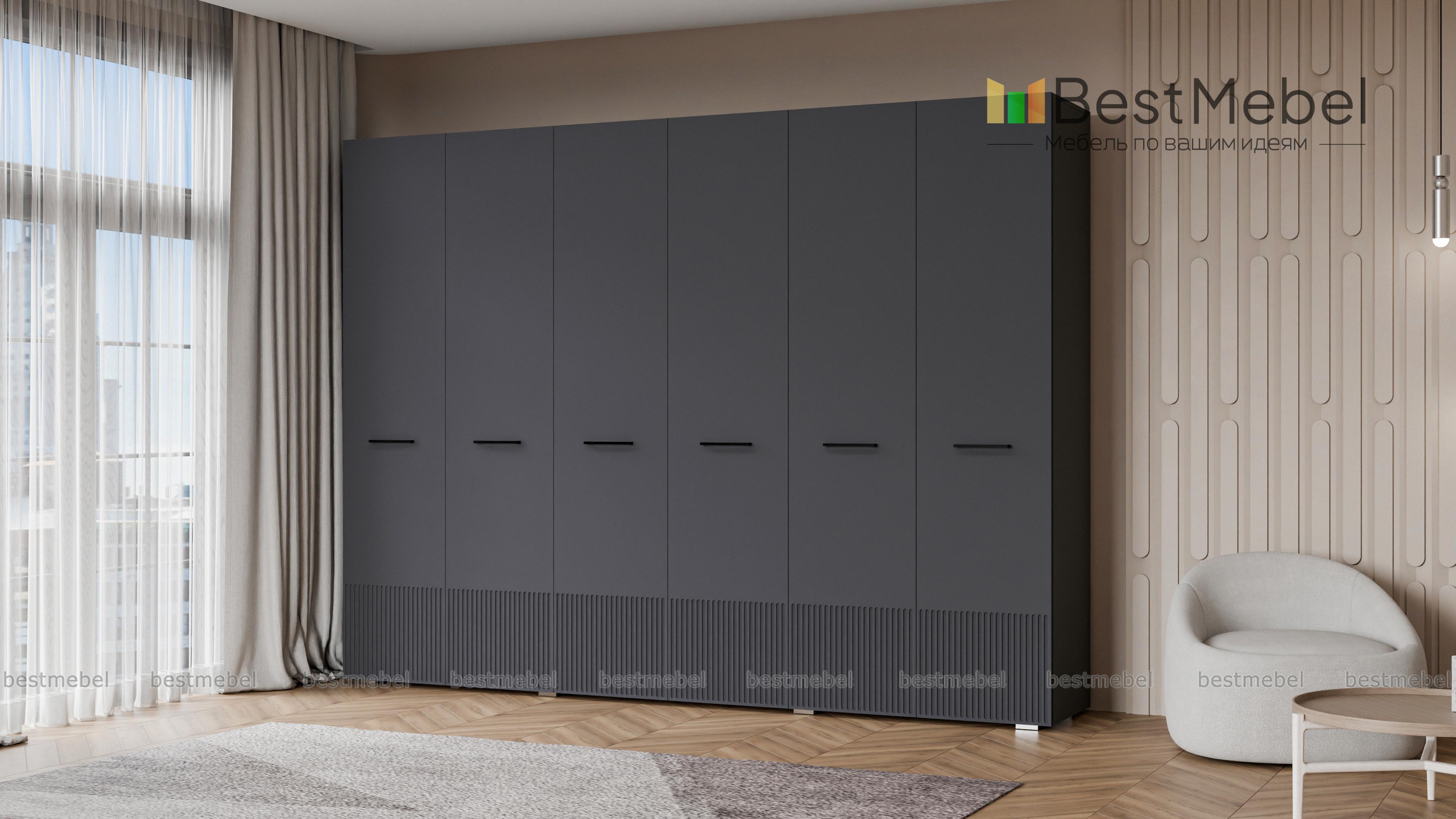 Шкаф распашной Декарт 6 BMS с шестью дверцами создан для хранения в просторных комнатах и обладает отличной вместительностью. Габариты шкафа скрадывает светлый оттенок, фрезеровка в нижней части фасада — практичное и стильное решение. Порядок в вашем гардеробе помогут легко поддерживать две центральные штанги и вместительные бельевые полки по бокам. Купить шкаф распашной Декарт 6 BMS, изготовленный по вашим размерам, приглашаем на сайт нашего интернет-магазина.