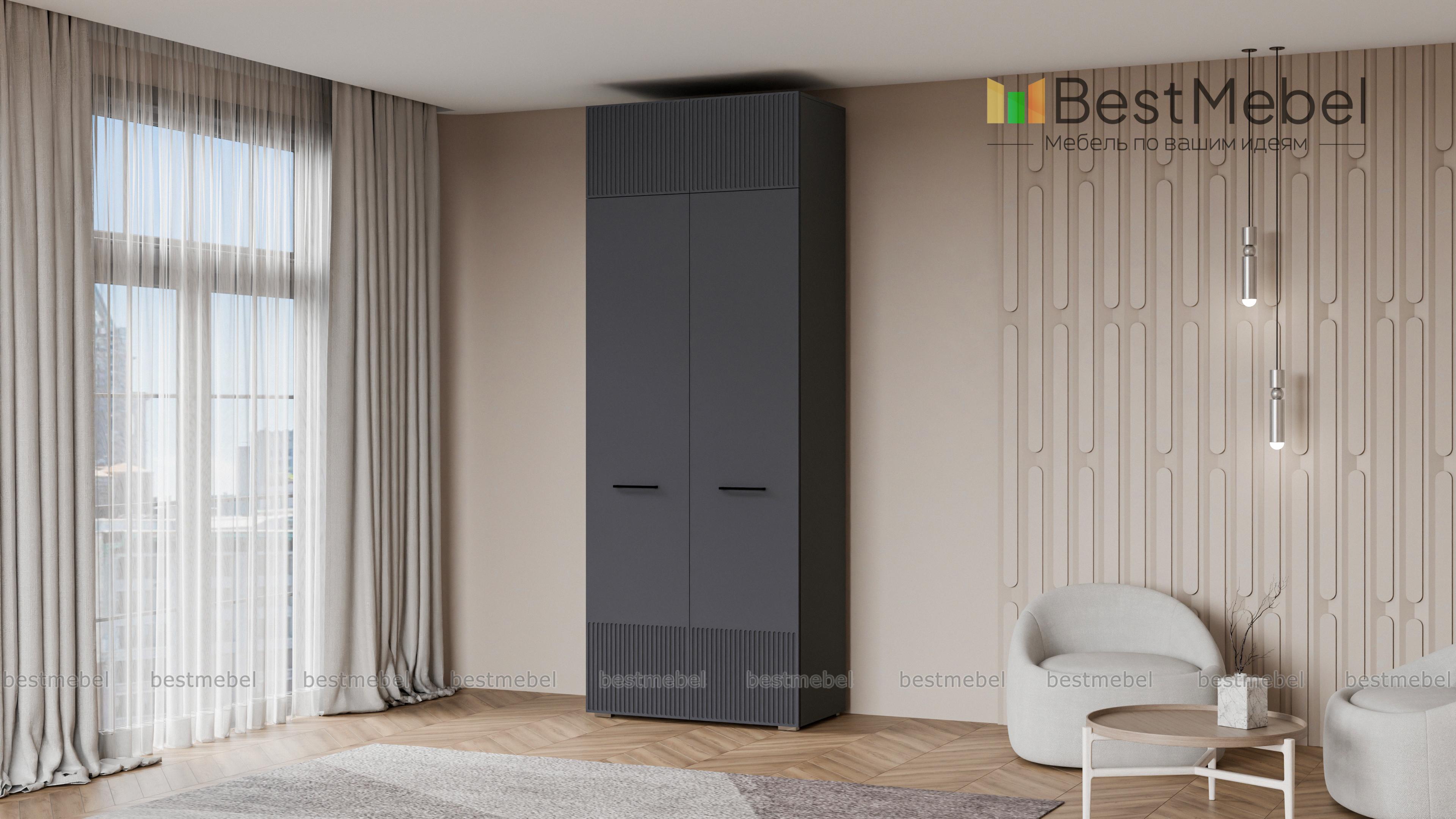 Шкаф распашной Декарт 8 BMS поможет быстро навести порядок в небольшой комнате. Двухдверный гардероб имеет базовое наполнение из штанги и верхней полки, а дополнительное пространство для хранения дает антресоль. Всегда актуально выглядит светлый фасад из МДФ с классической фрезерованной отделкой и контрастными поперечными скобами. Купить шкаф распашной Декарт 8 BMS в нужном размере и цветовой гамме приглашаем недорого на сайт нашего интернет-магазина.
