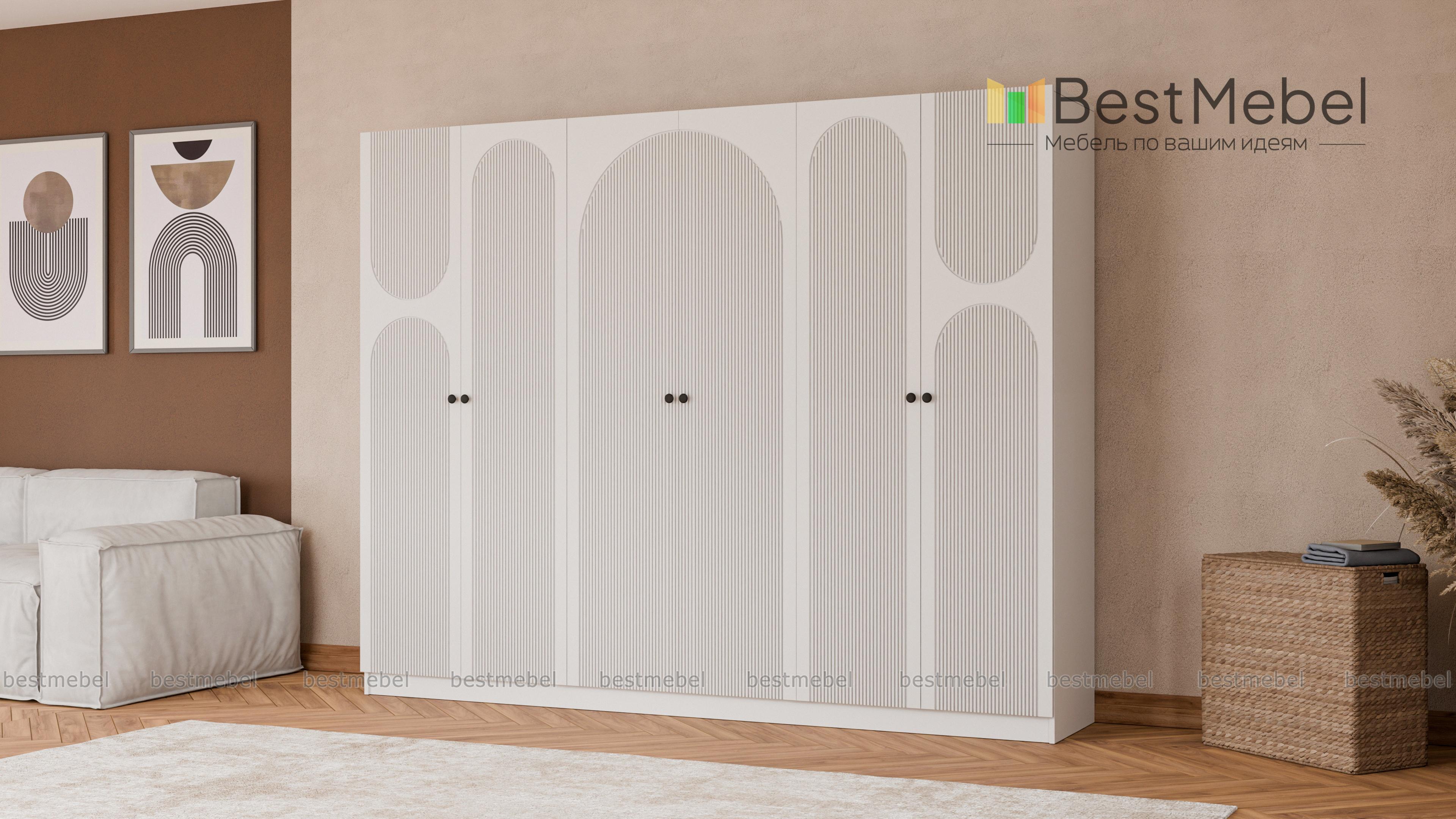 Шкаф распашной Рене 34 BMS отличается вместительностью и выразительным современным дизайном. На темном фасаде эффектно смотрится фрезеровка, корпус из ламинированной ДСП выполнен в древесных тонах. Шестидверная модель укомплектована необходимыми для хранения одежды на вешалках, трикотажа и постельных принадлежностей мебельными штангами и полками. Купить шкаф распашной Рене 34 BMS вы сможете на сайте нашего интернет-магазина в удобном размере и оттенке из каталога.