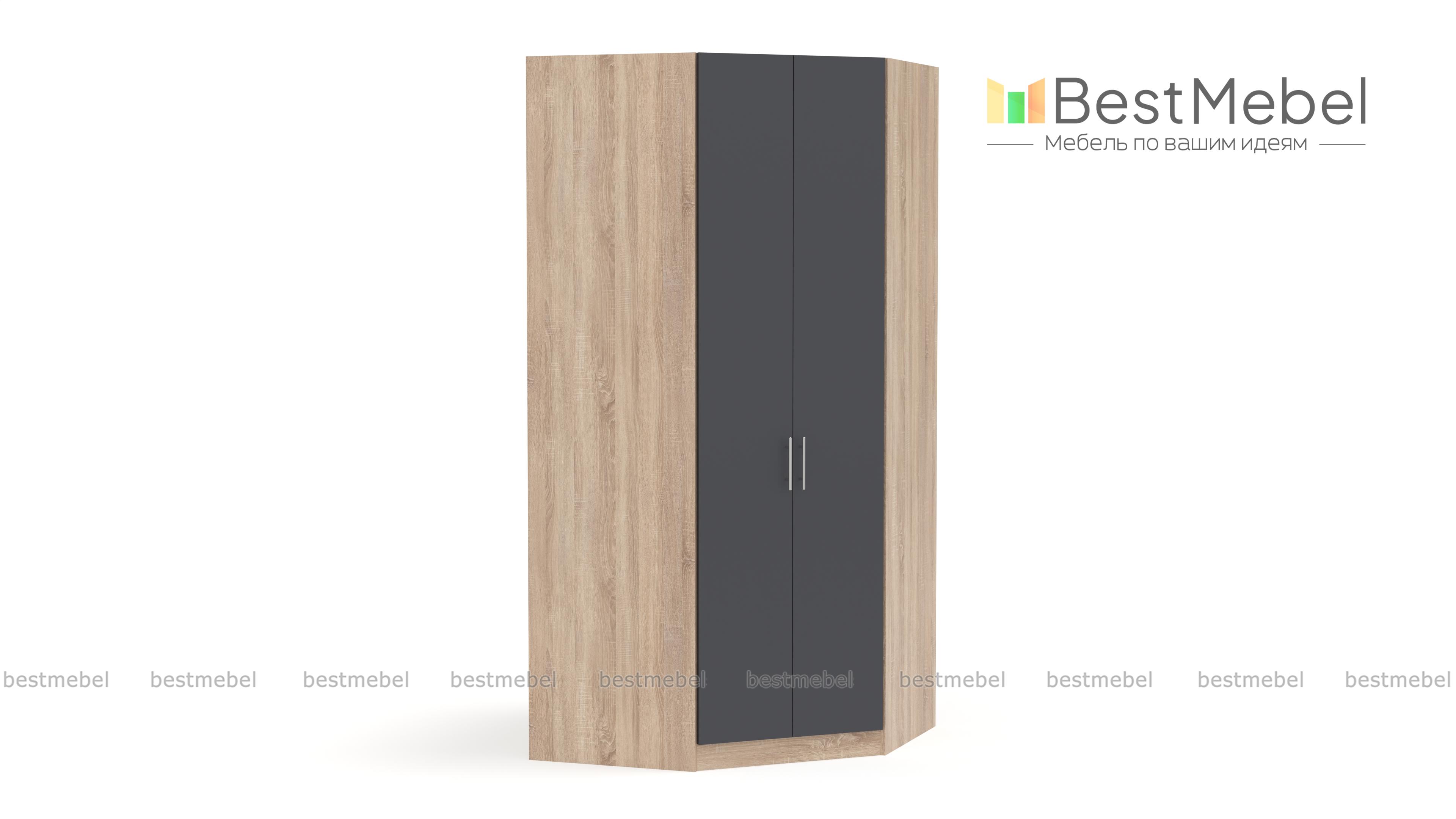 Шкаф угловой Маугли BMS не требует много места и отлично вписывается в интерьер детской. В отделке использованы ламинированная ДСП спокойных древесных и темных оттенков и оригинальная фурнитура, создавая гармоничный современный дизайн. Несмотря на внешнюю компактность, в этот шкаф поместится все необходимое, а за счет распашной конструкции вещи хорошо просматриваются. Купить шкаф угловой Маугли BMS с выбором цвета и размеров вы сможете в нашем интернет-магазине.