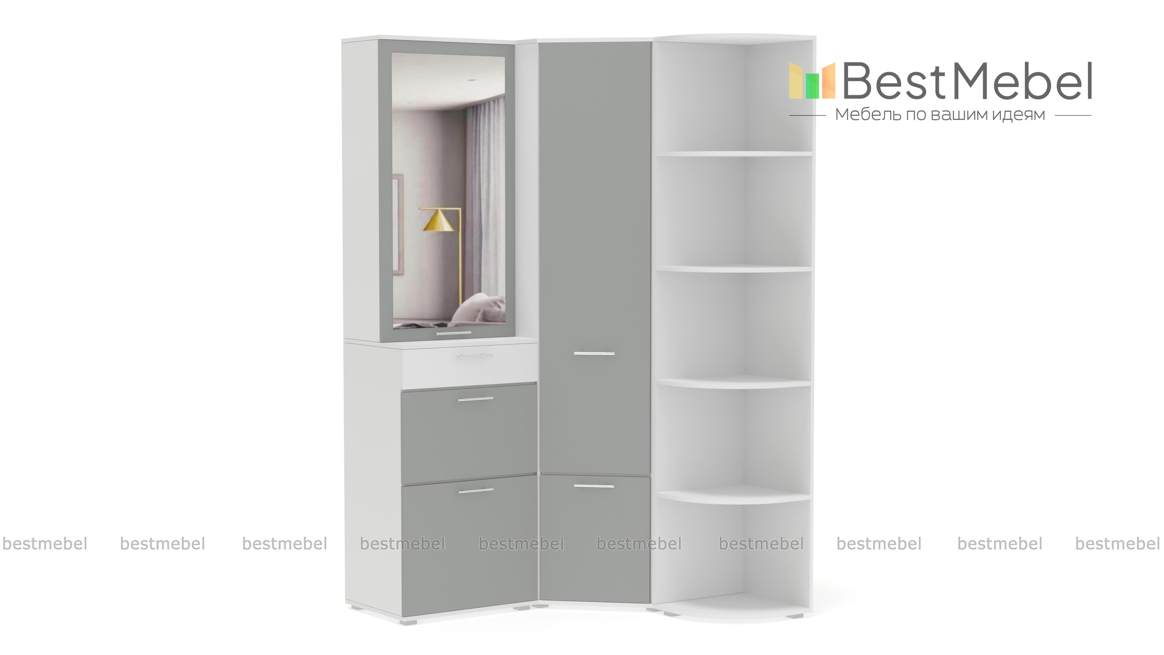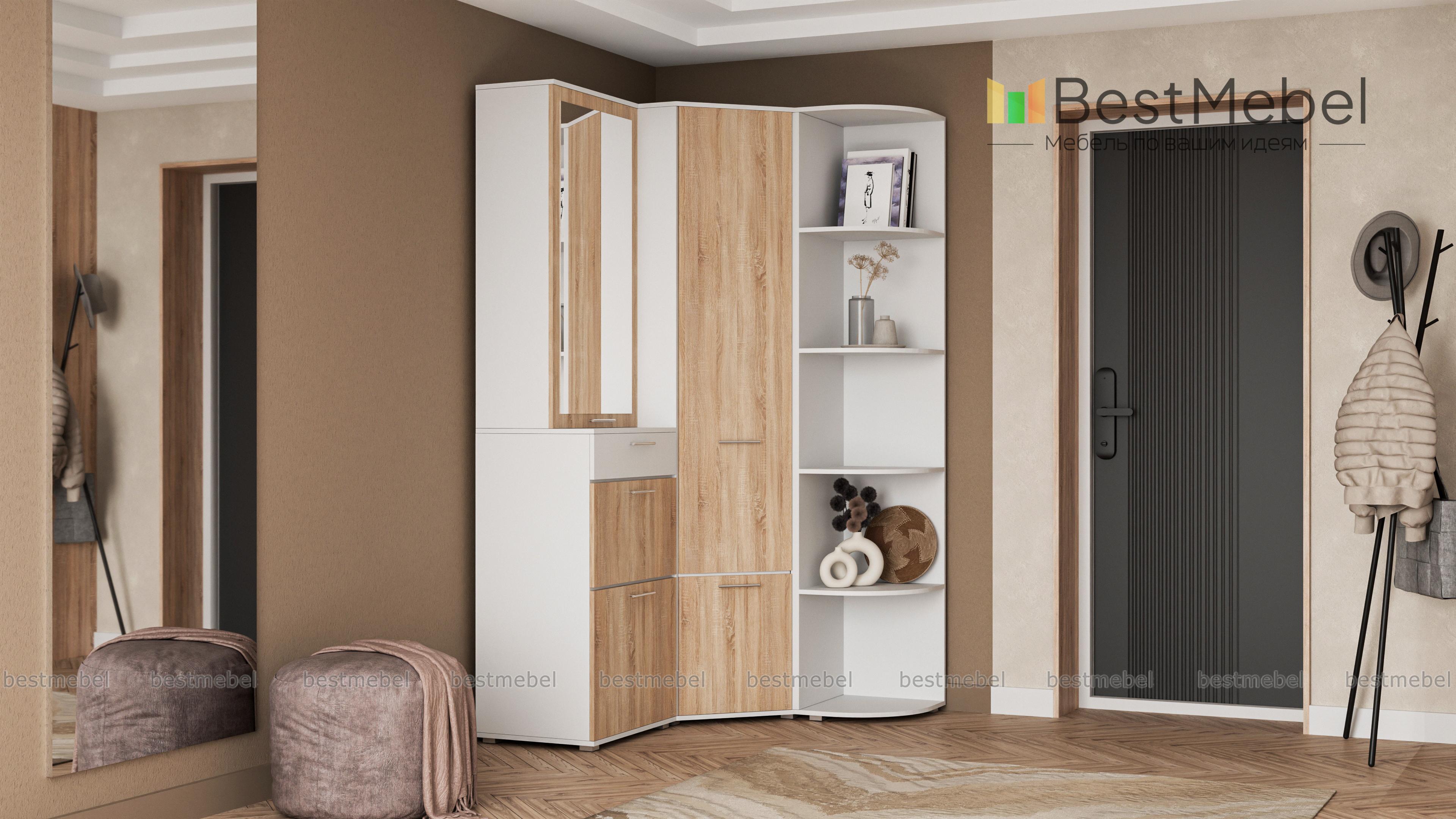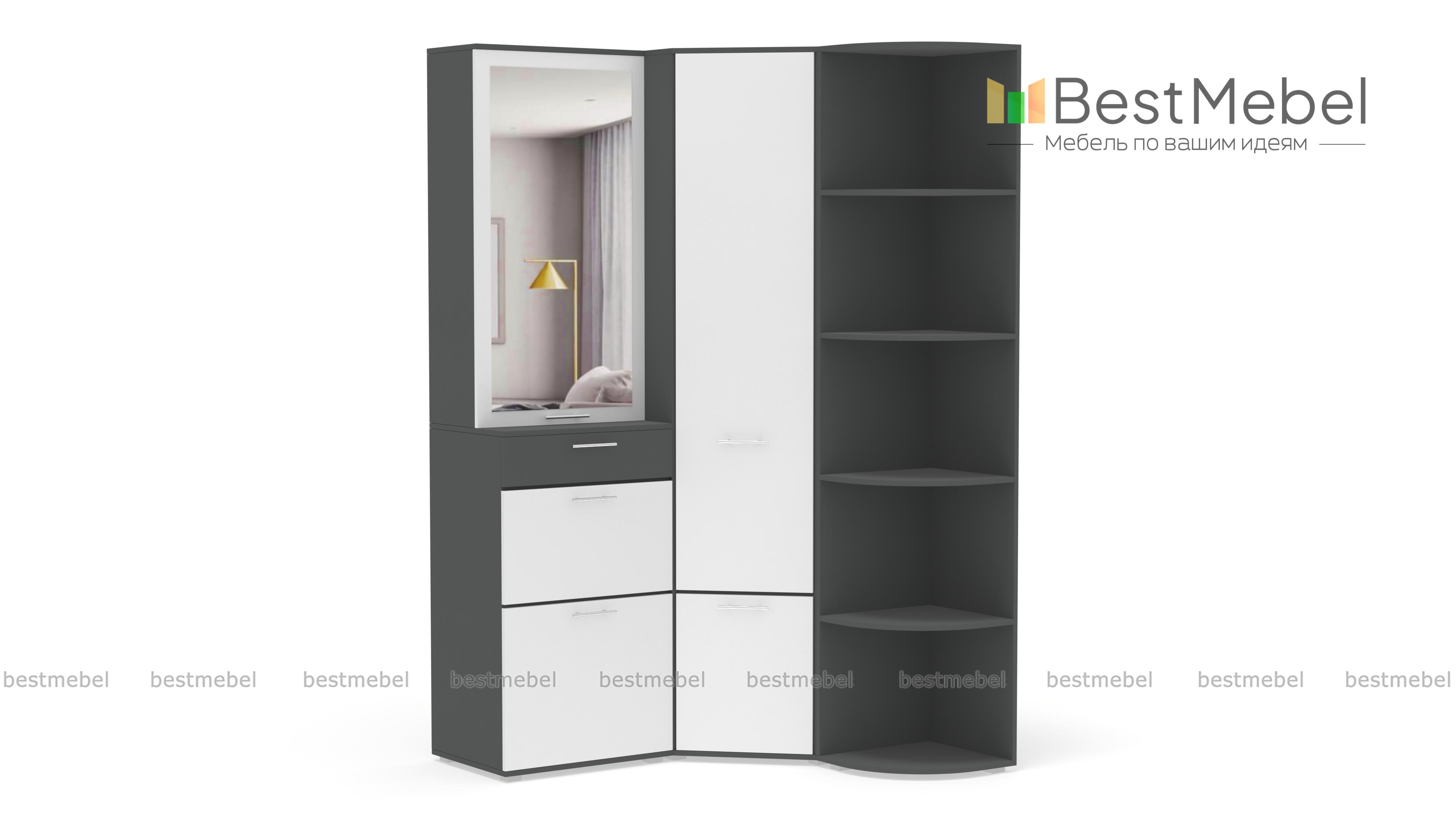Угловой шкаф Вива 1 BMS – отличное решение для прихожей. Эта практичная конструкция займет минимум места, но её вместительное наполнение скроют взглядов гостей одежду и обувь. Удобные дверцы разграничивают отделения и легко без нареканий открываются. Модное сочетание контрастных цветов освежит интерьер и сделает Вашу прихожую неповторимой. Возможности сайта позволяют не только подобрать нужный цвет, но и выбрать самую комфортную компоновку. Купить угловой шкаф Вива BMS можно в нашем интернет – магазине быстро и недорого.