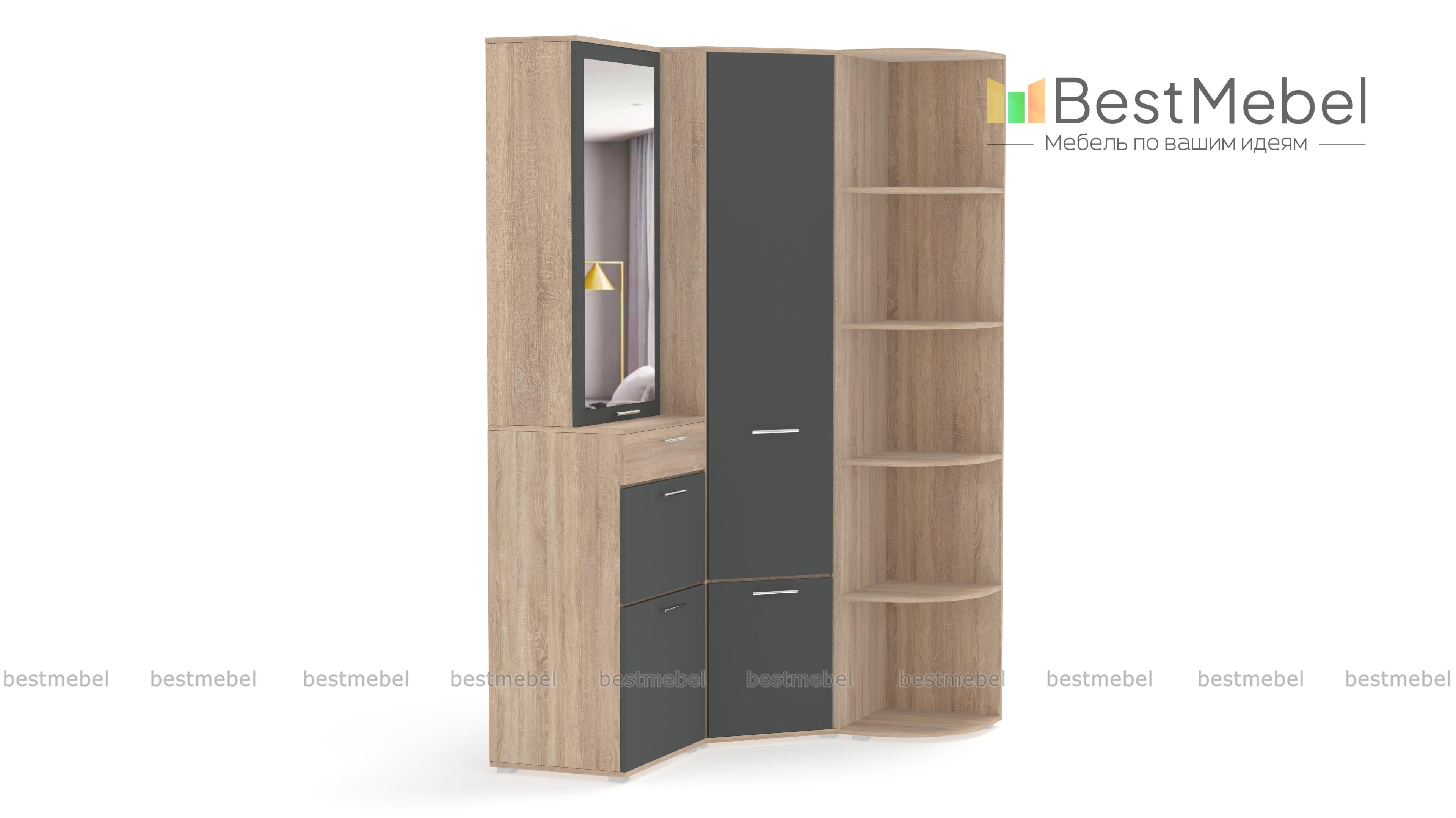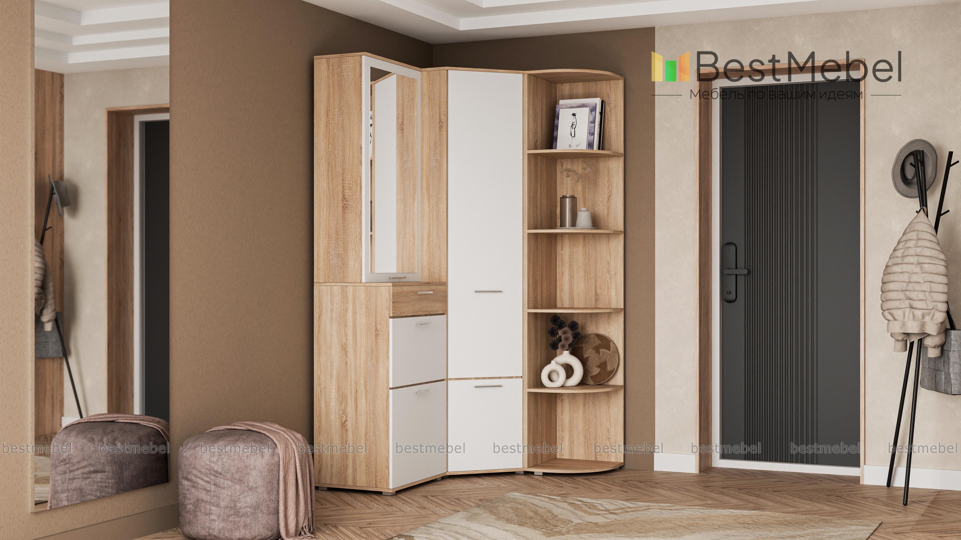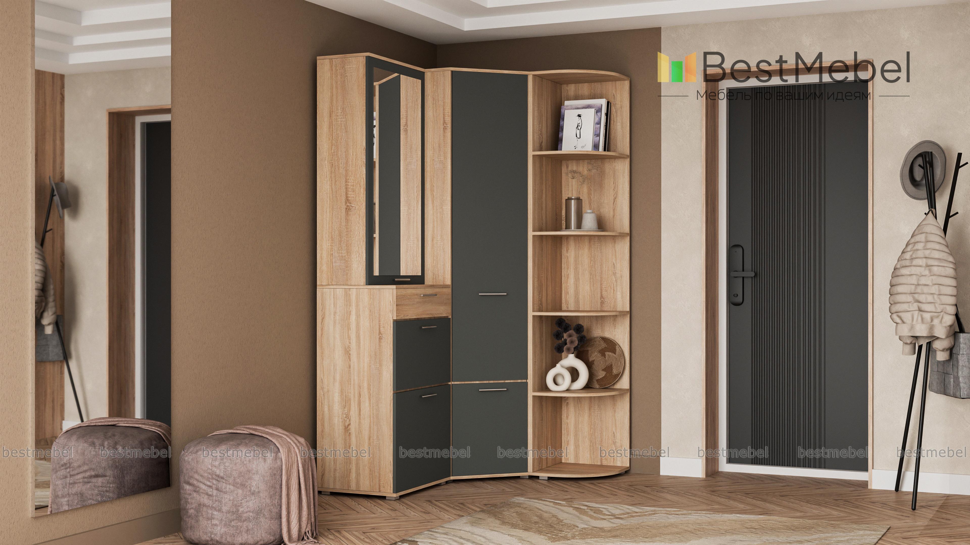 Угловой шкаф Вива 1 BMS – отличное решение для прихожей. Эта практичная конструкция займет минимум места, но её вместительное наполнение скроют взглядов гостей одежду и обувь. Удобные дверцы разграничивают отделения и легко без нареканий открываются. Модное сочетание контрастных цветов освежит интерьер и сделает Вашу прихожую неповторимой. Возможности сайта позволяют не только подобрать нужный цвет, но и выбрать самую комфортную компоновку. Купить угловой шкаф Вива BMS можно в нашем интернет – магазине быстро и недорого.