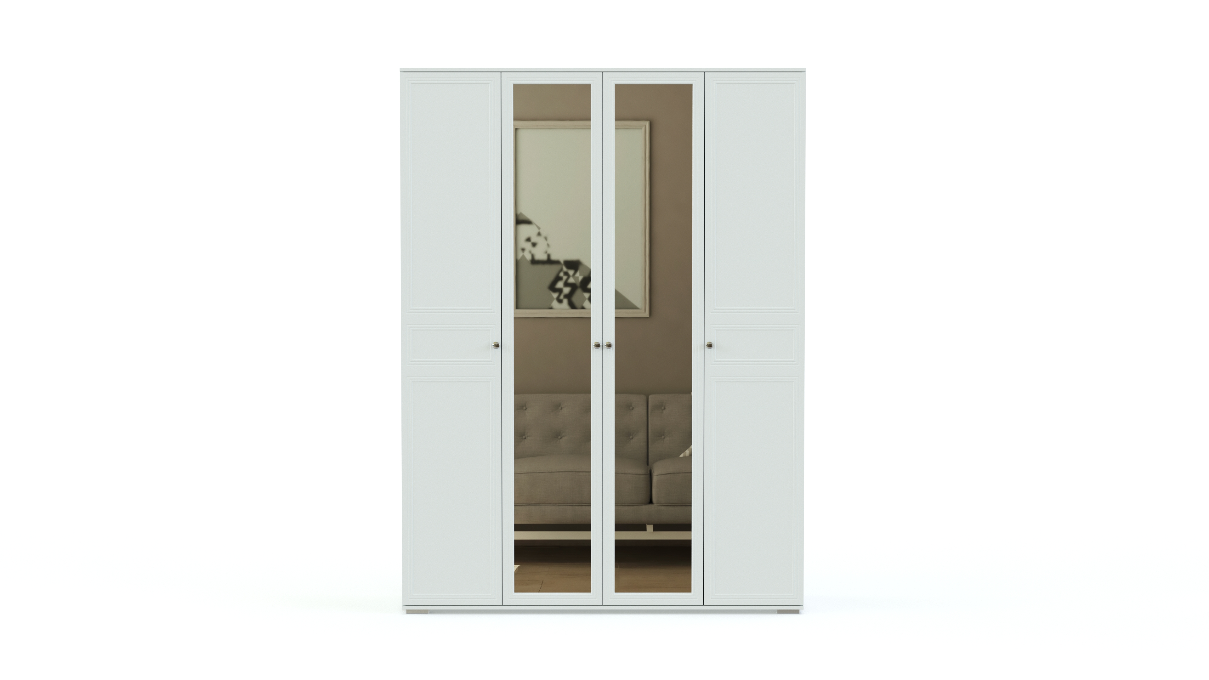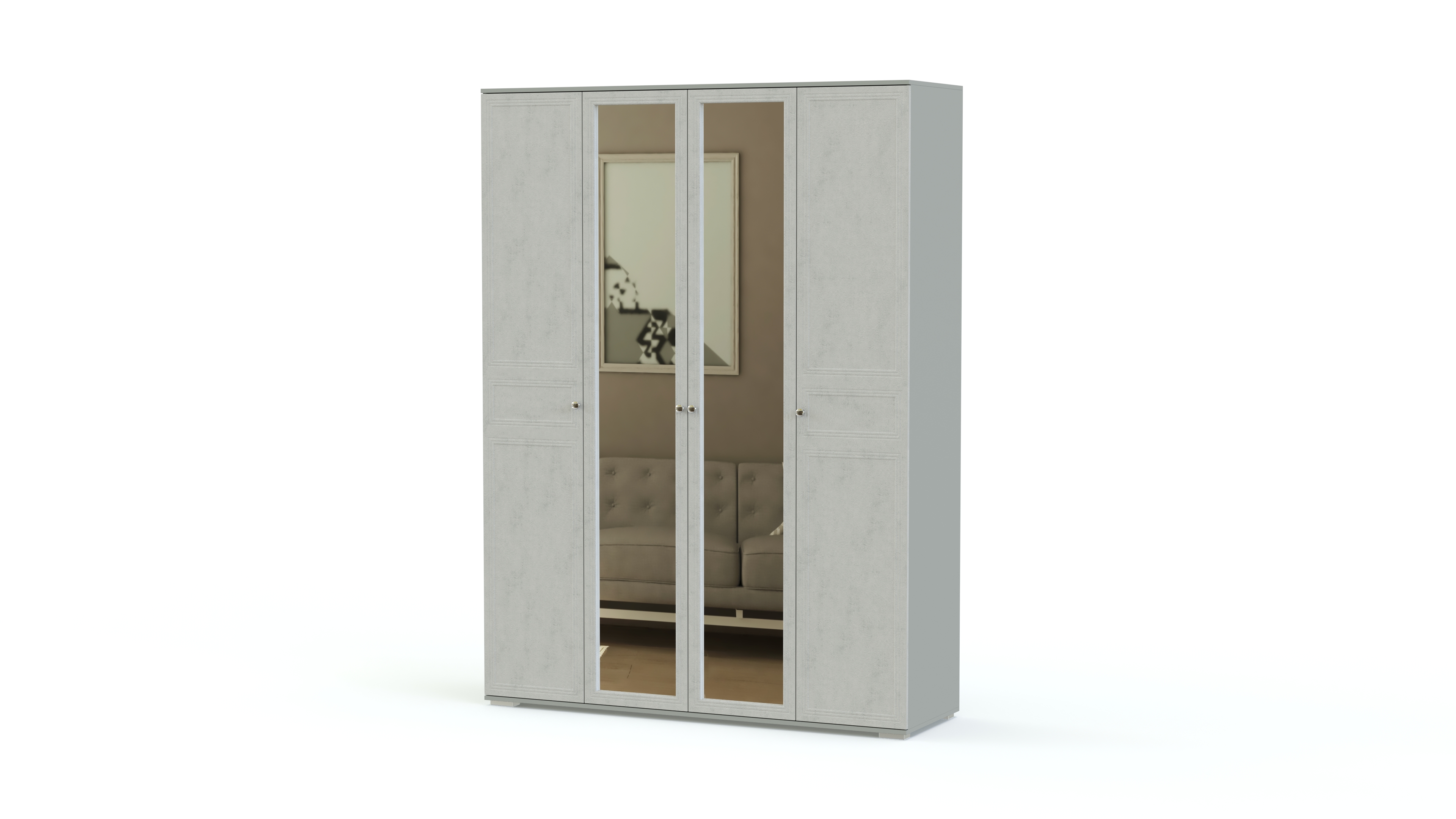 Эффектная женственная модель смотрится особенно выигрышно за счет светлой расцветки, оригинальной фурнитуры и сочетания в оформлении фасадов различных материалов. В комплекте роскошная двуспальная кровать с мягкой, изящной формы спинкой, прикроватная тумба, вместительный распашной шкаф с зеркалами в полный рост и изысканный туалетный столик. Спальня Карина 1 BMS станет отличным выбором для классического интерьера, подчеркнув все его достоинства.