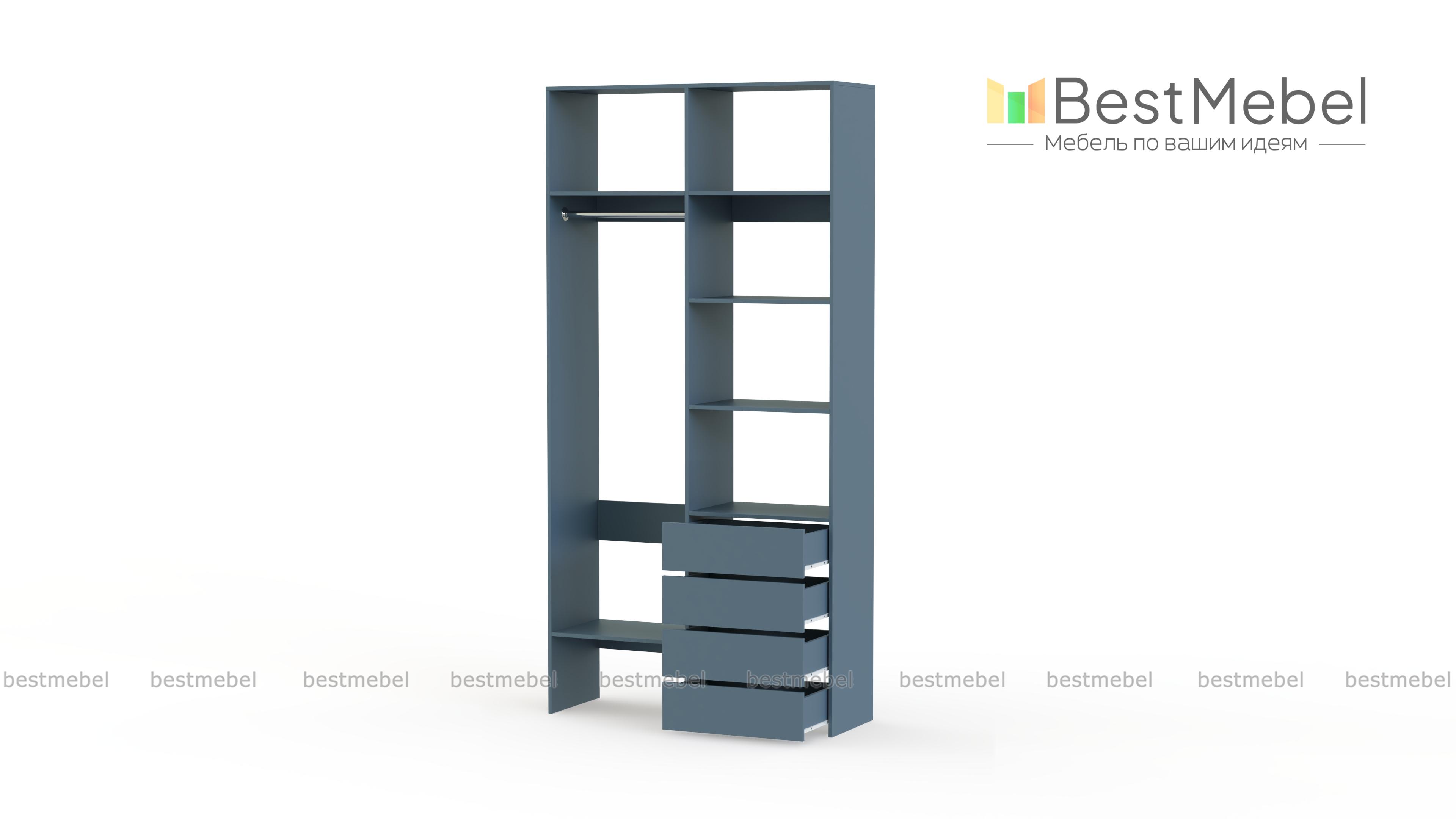 Стеллаж для одежды Мирта 2 BMS поможет вам организовать хранение дома или в торговом зале. Открытая конструкция со штангой, полками и рядом из четырех выдвижных ящиков подходит для размещения одежды на вешалках, коробок с обувью и мелкого трикотажа. Материал изготовления – устойчивая к износу и долговечная ламинированная плита в базовом оттенке. Купить стеллаж для одежды Мирта 2 BMS приглашаем в наш интернет-магазин, подобрав необходимые размеры и цвет по каталогу.