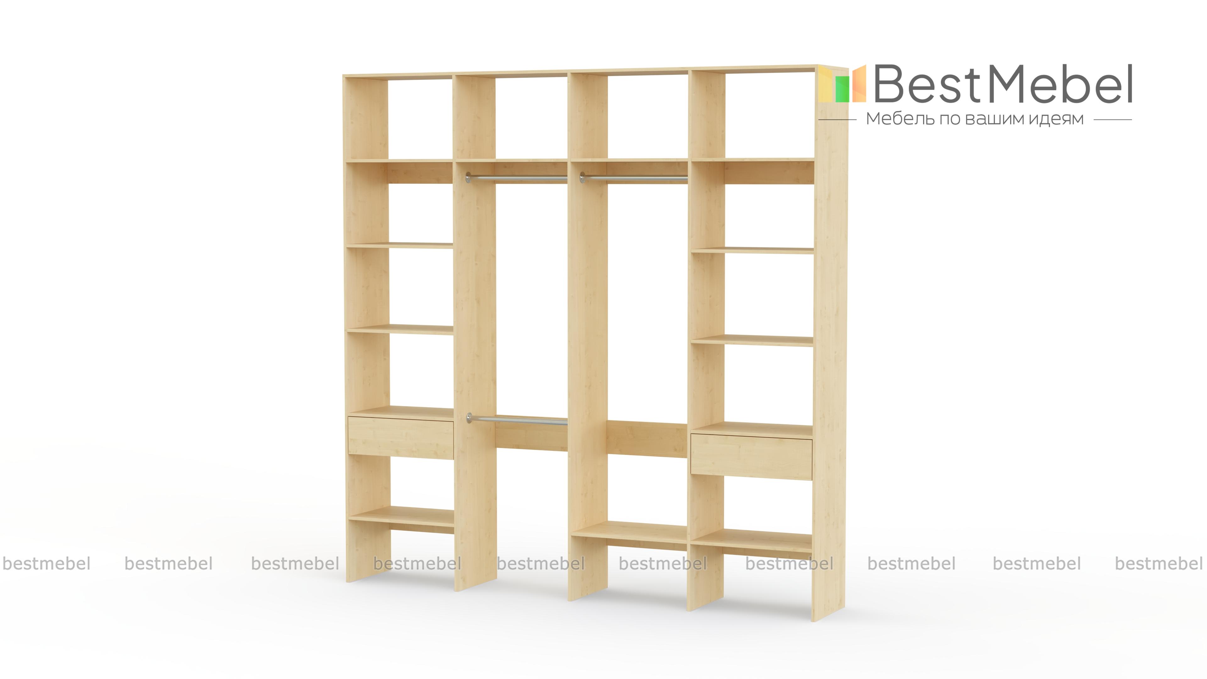 Стеллаж для одежды Мирта 20 BMS сделает хранение удобным, сэкономив время на поиски нужной вещи. Наличие большого количества полок позволяет компактно сложить одежду, поставить корзины и контейнеры, а для вешалок и мелких аксессуаров имеются штанги и выдвижные отделения. Открытый четырехсекционный стеллаж, изготовленный из ЛДСП, станет отличным выбором для гардеробной. Купить стеллаж для одежды Мирта 20 BMS вы сможете в нашем интернет-магазине, подобрав все необходимые параметры.