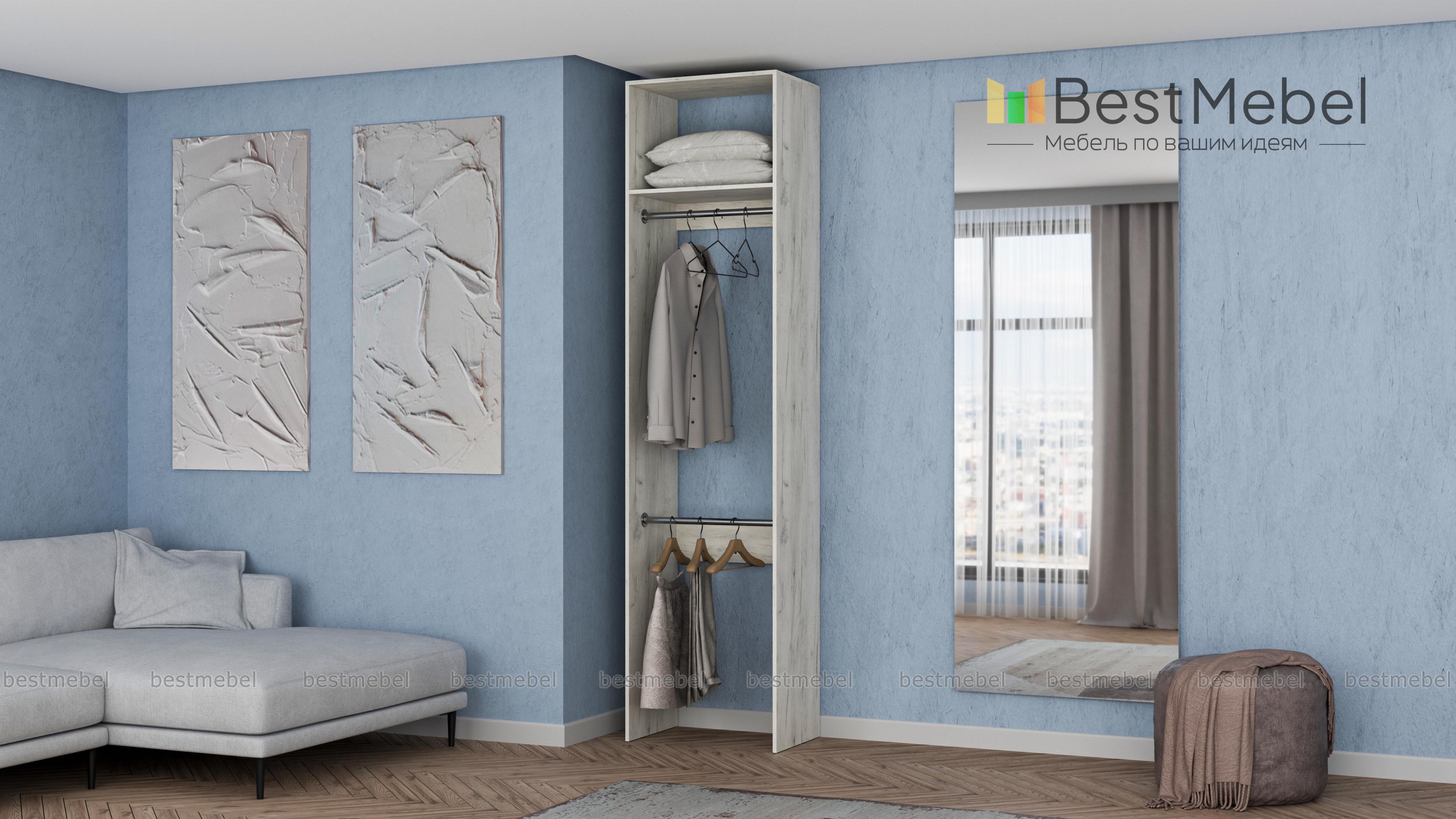 Стеллаж для одежды Мирта 30 BMS имеет небольшую ширину и прекрасно подходит для малогабаритных помещений. Открытая легкая конструкция без задней стенки укомплектована двумя штангами для вешалок — вверху и внизу, а также одной верхней полкой. Для изготовления стеллажа использована ламинированная плита — экологичный и износостойкий материал. Купить стеллаж для одежды Мирта 30 BMS вы сможете в нашем интернет-магазине в любом удобном размере и оттенке из каталога.