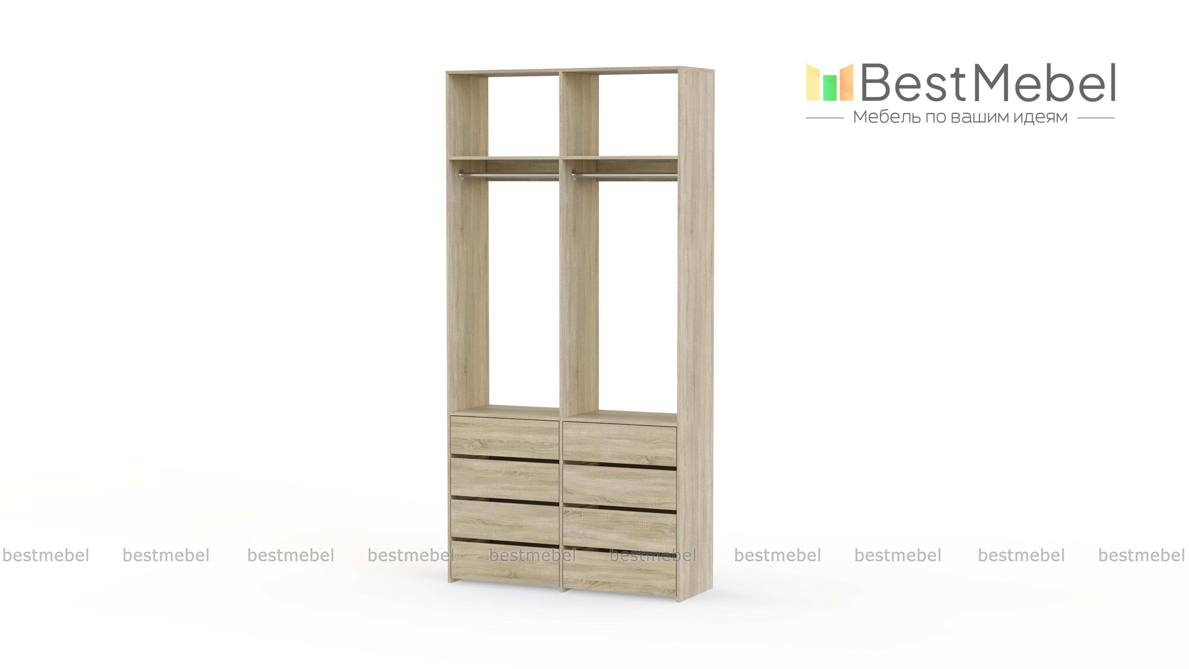 Стеллаж для одежды Мирта 44 BMS — это готовое решение в вашу гардеробную или прихожую. Продуманной системой хранения с двумя штангами, верхними полками и двумя рядами бельевых ящиков удобно пользоваться, не тратя время на поиски нужных вещей. Ламинированное покрытие эстетично выглядит, отличается прочностью и долговечностью. Купить стеллаж для одежды Мирта 44 BMS вы сможете на сайте нашего интернет-магазина с изготовлением по индивидуальным размерам.
