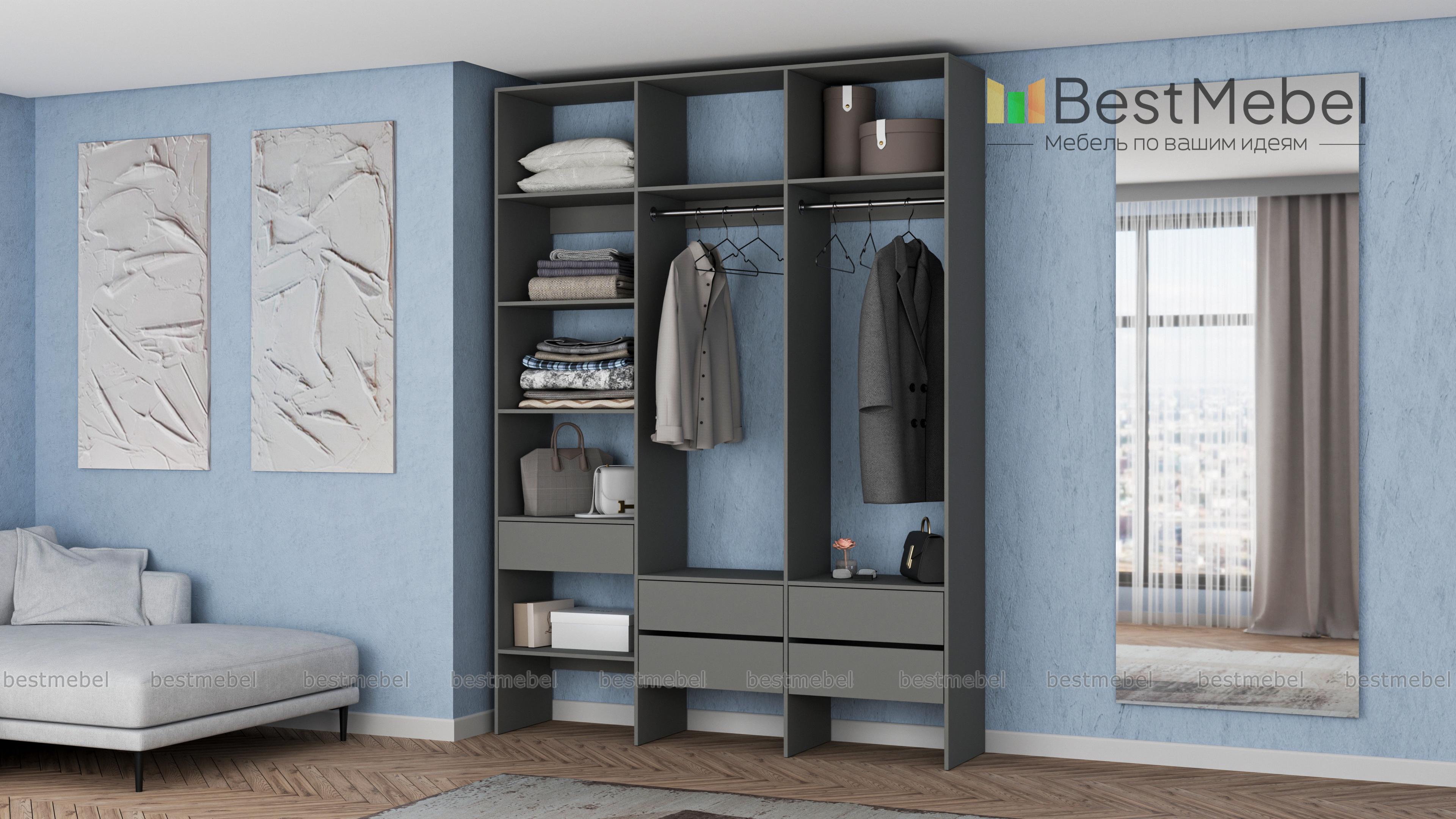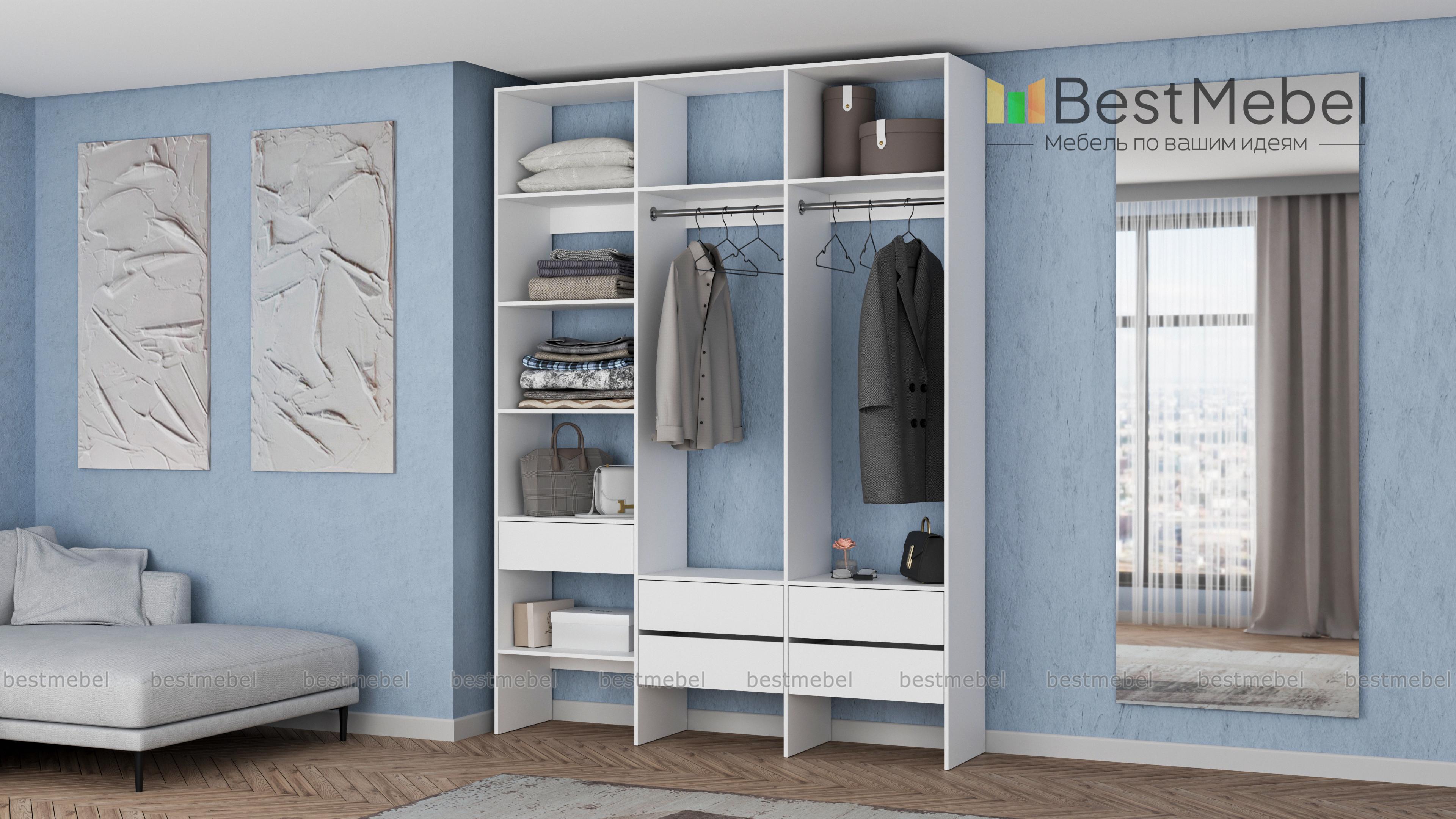 Стеллаж для одежды Мирта 53 BMS поможет вам организовать хранение в гардеробной комнате или прихожей. Открытая конструкция включает два отделения со штангами, пять выдвижных ящиков и полки, на которых можно разместить как обувь, так и стопки одежды, домашний текстиль, коробки с мелочами. Ламинированные поверхности отличаются износостойкостью и простотой ухода. Купить стеллаж для одежды Мирта 53 BMS в любом размере и оттенке из каталога приглашаем в наш интернет-магазин.