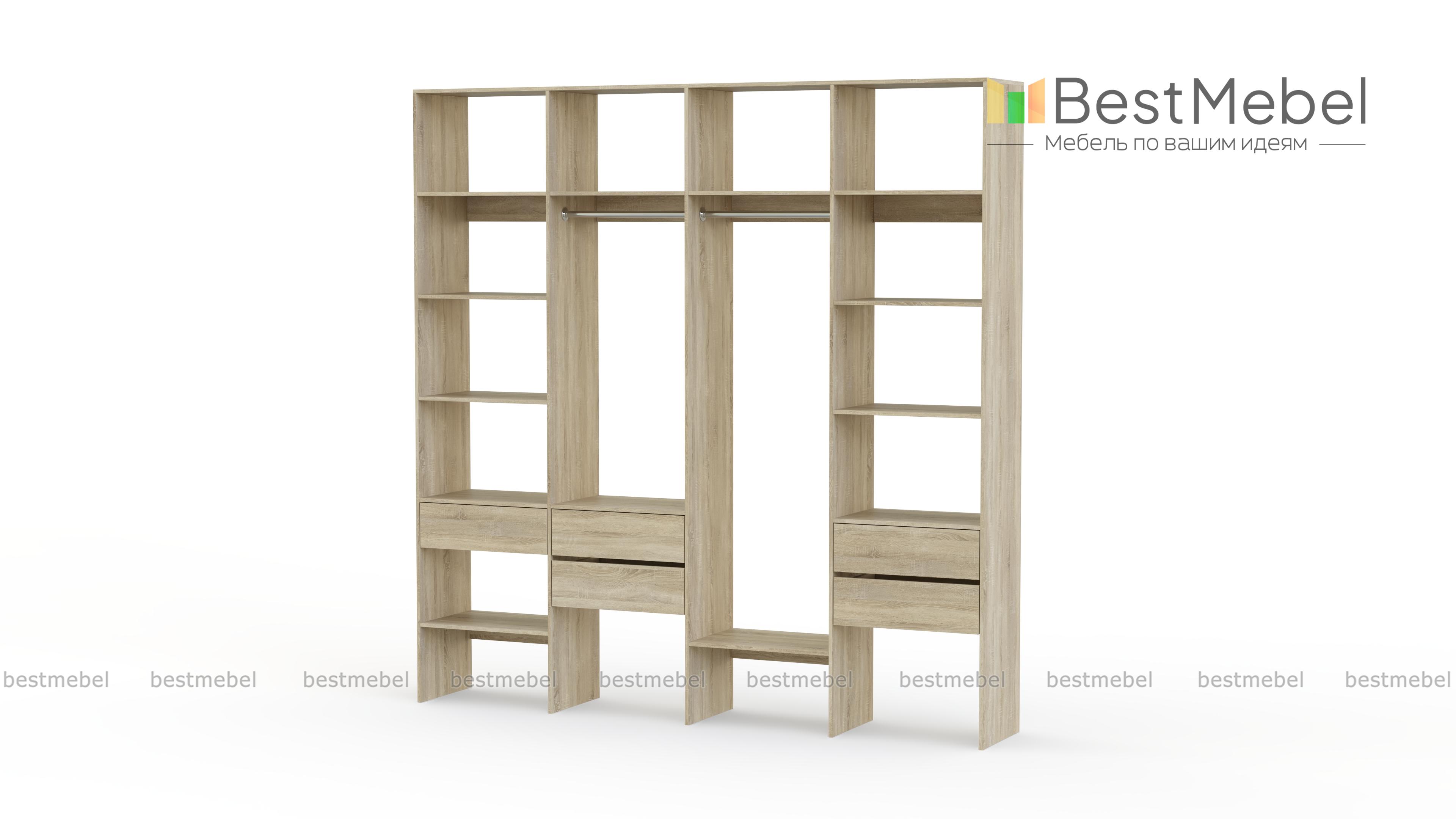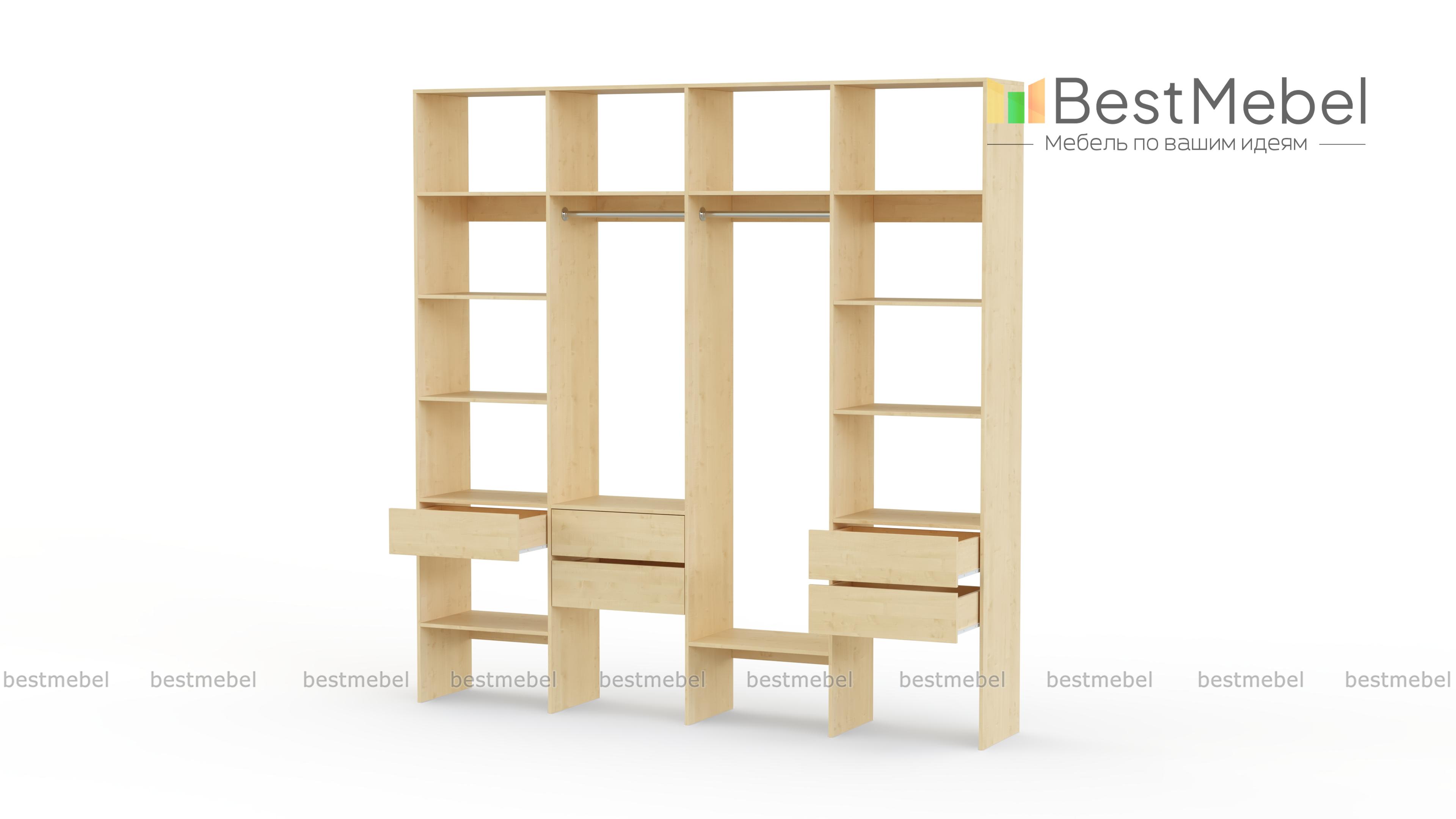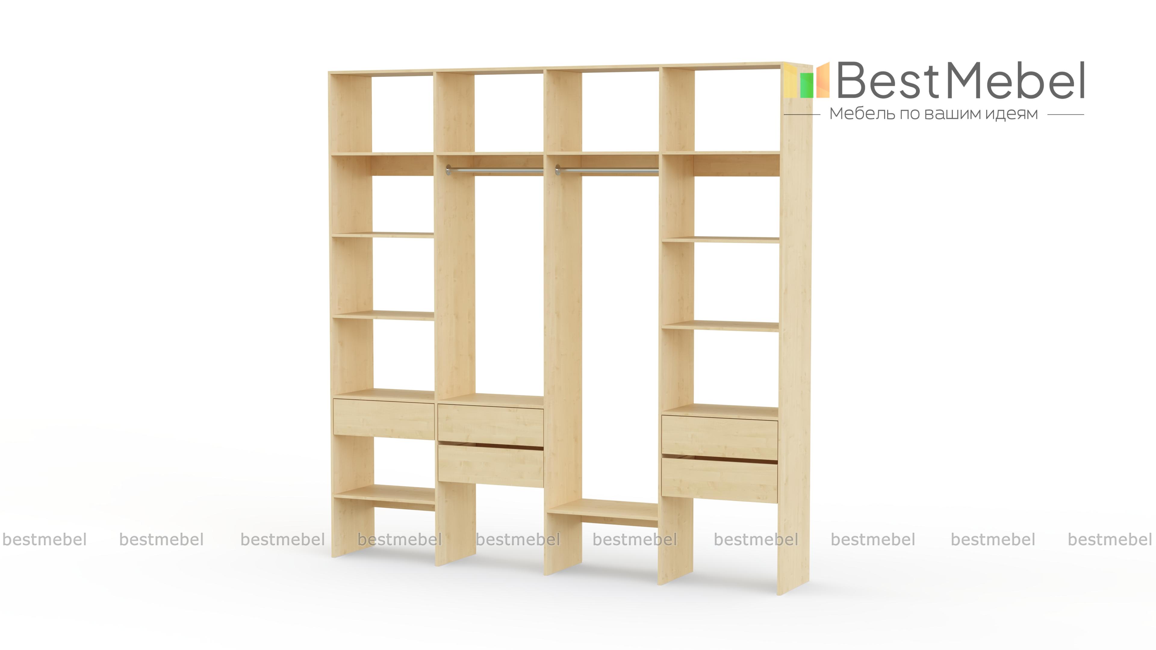 Стеллаж для одежды Мирта 68 BMS поможет вам рационально использовать пространство. Одежда и обувь, аксессуары и прочие необходимые вещи будут всегда в удобном доступе благодаря комбинации двух штанг, расположенных на разной высоте полок и пяти выдвижных ящиков. Прочная ламинированная плита обеспечивает конструкции надежность и немаловажную для гардеробной простоту ухода. Купить стеллаж для одежды Мирта 68 BMS приглашаем в наш интернет-магазин с выбором цвета и габаритов.