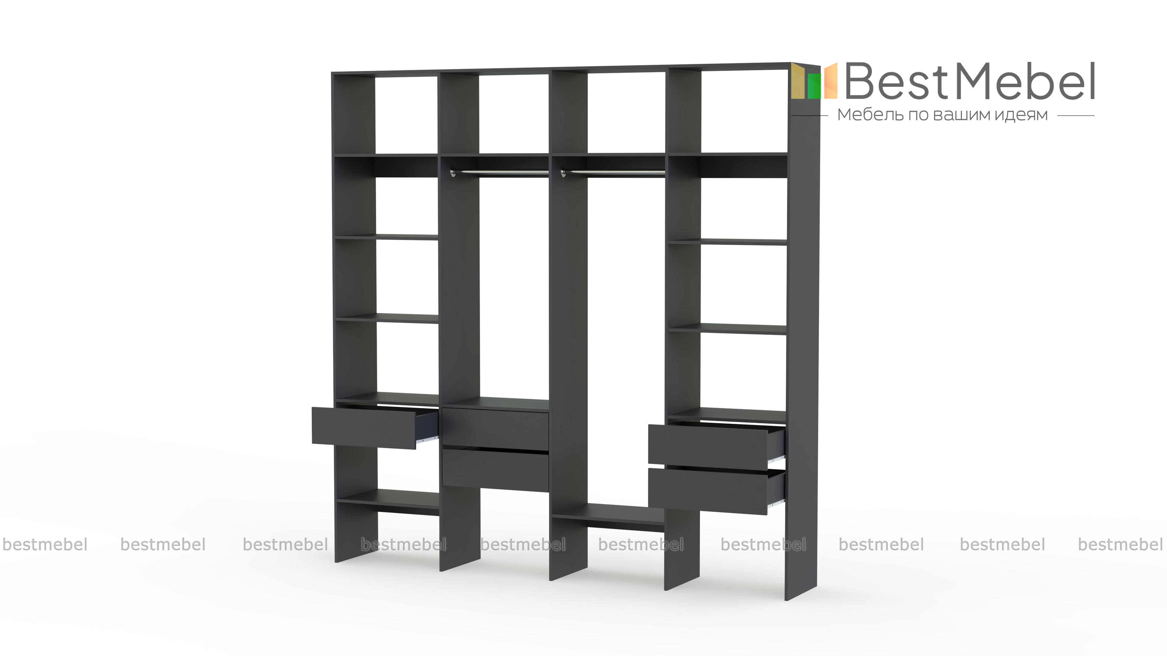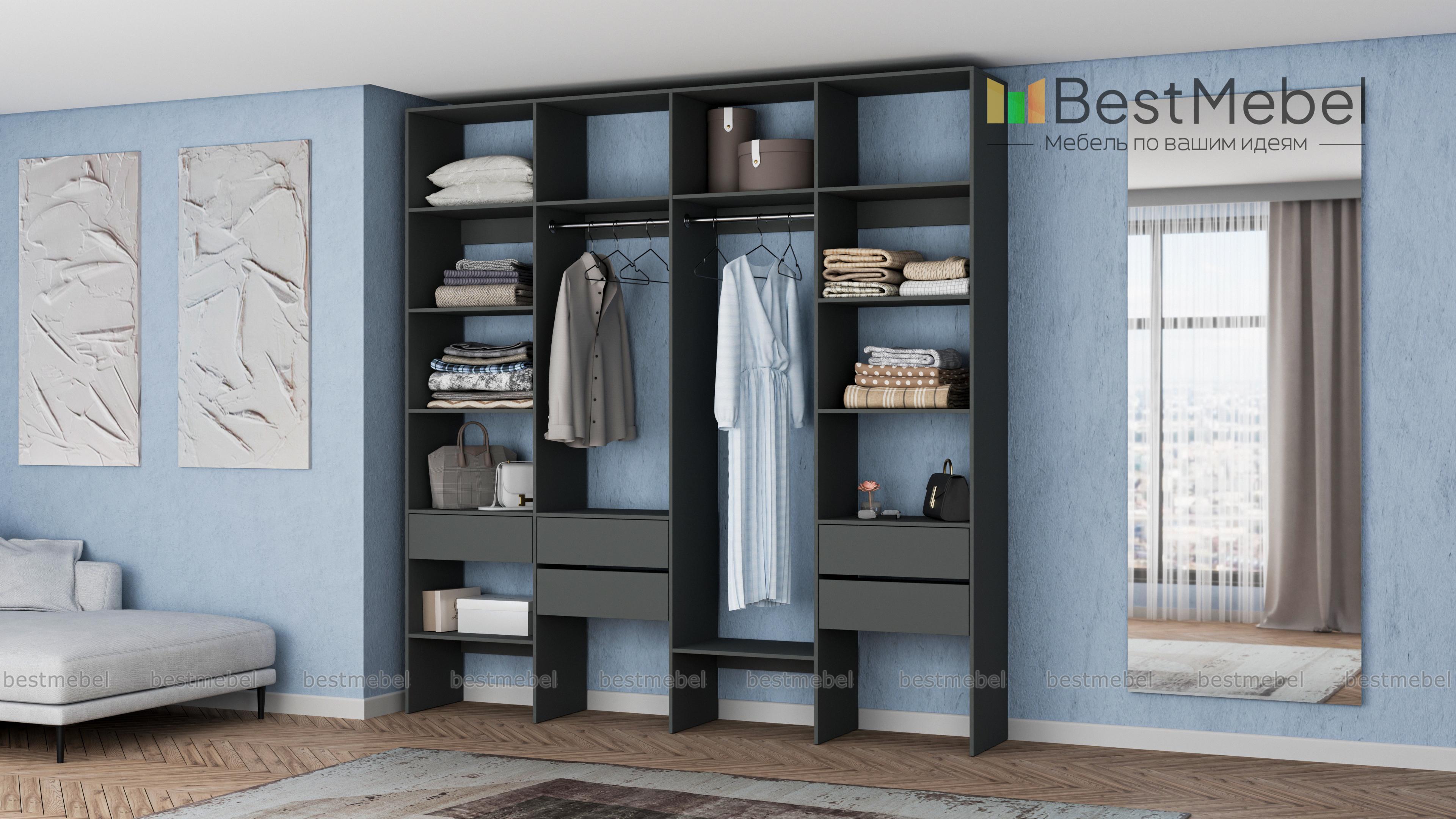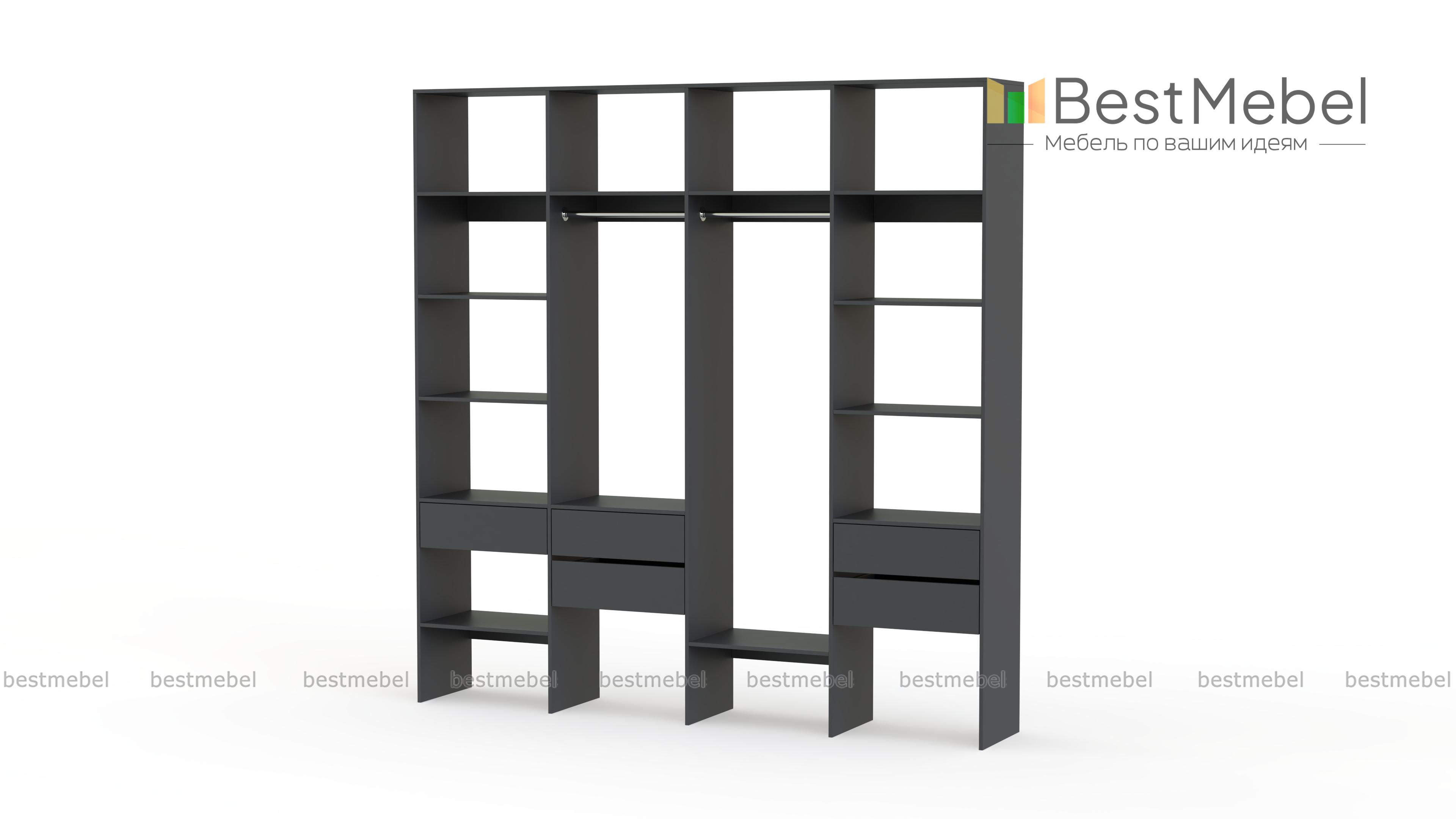 Стеллаж для одежды Мирта 68 BMS поможет вам рационально использовать пространство. Одежда и обувь, аксессуары и прочие необходимые вещи будут всегда в удобном доступе благодаря комбинации двух штанг, расположенных на разной высоте полок и пяти выдвижных ящиков. Прочная ламинированная плита обеспечивает конструкции надежность и немаловажную для гардеробной простоту ухода. Купить стеллаж для одежды Мирта 68 BMS приглашаем в наш интернет-магазин с выбором цвета и габаритов.