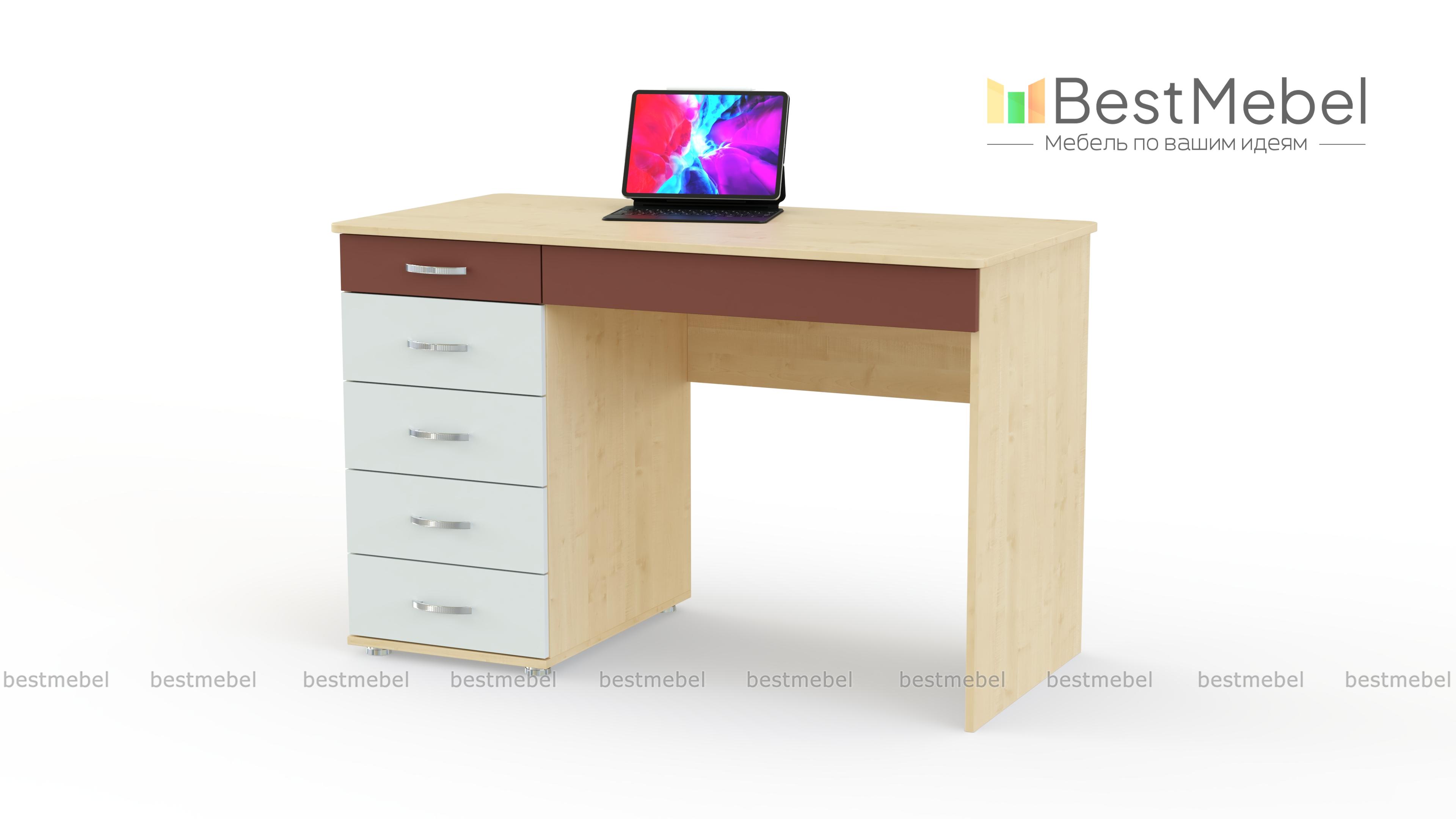 Письменный стол Акварель 53.14 BMS придется по вкусу всем любителям такого стиля и дизайна. Модель довольно вместительная и без труда впишется в интерьер спальни или гостиной. Изделие располагает пятью просторными ящичками выдвижного типа, и просторной столешницей. В ящиках удобно хранить канцелярские и косметические принадлежности, различные бытовые предметы, любимые собрания книг, устройства для гаджетов, документы. Купить письменный стол Акварель 53.14 BMS по низкой цене можно на портале нашего интернет-магазина буквально за пару кликов.