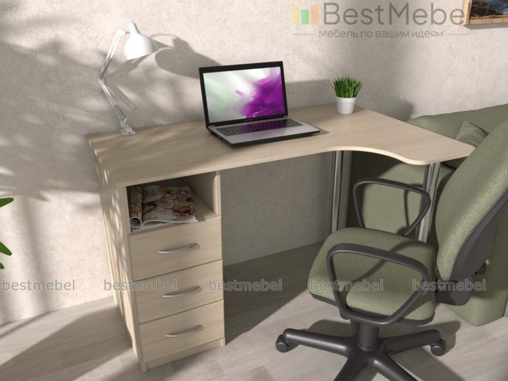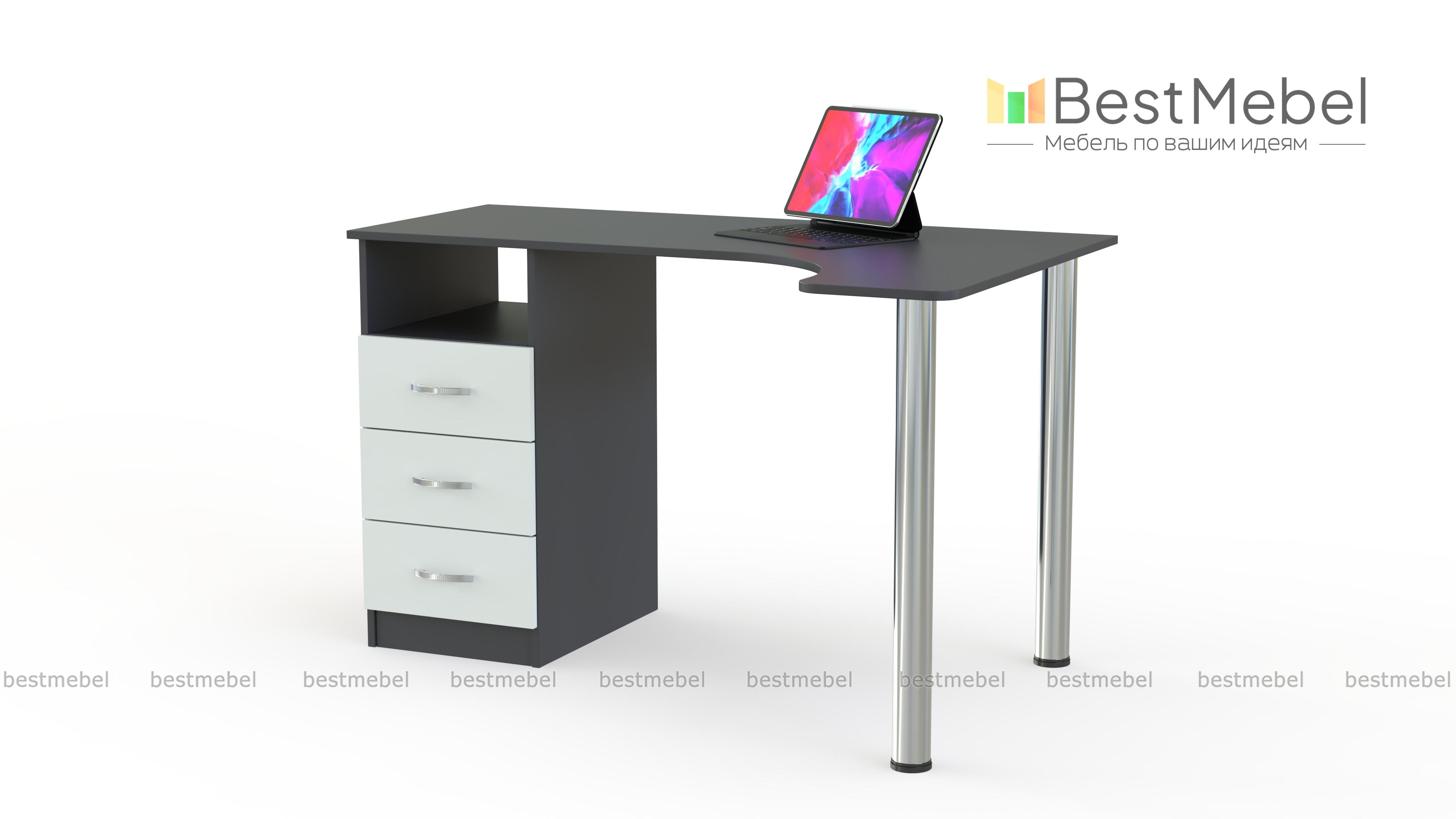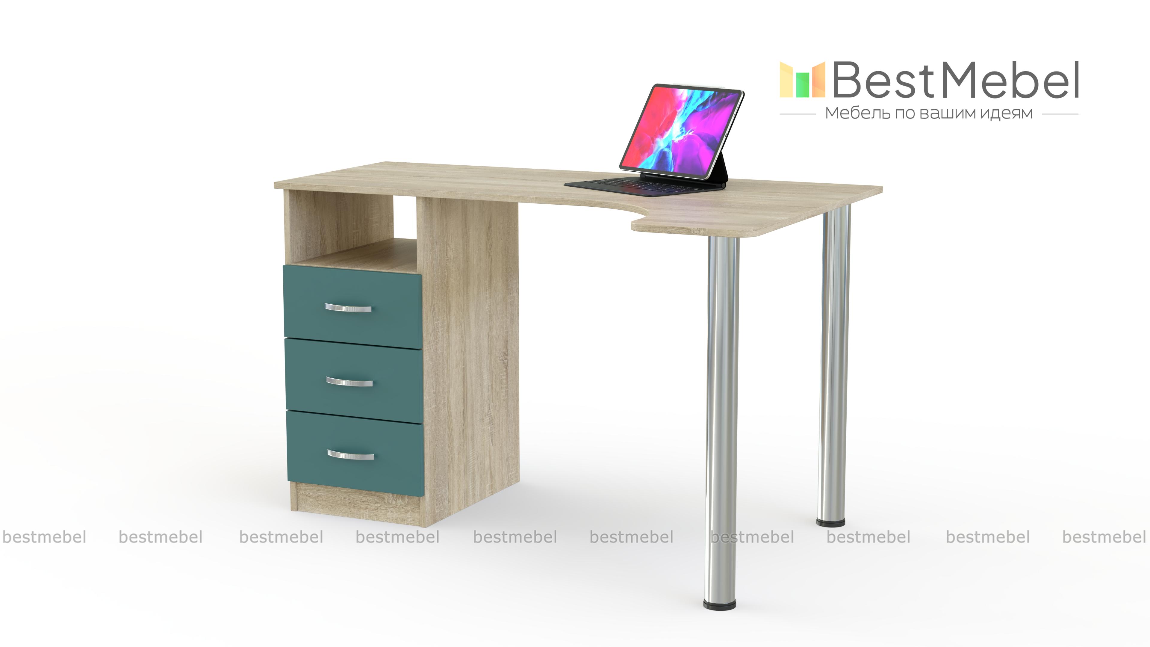 Письменный стол Беллатриса 1 BMS является компактной и современной моделью. Две металлические ножки обеспечивают хорошую опору и облегчают конструкцию. В качестве еще одной опоры выступает модуль из выдвижных ящиков. Стол занимает угловое пространство и имеет эргономичную столешницу со сглаженными углами. Стол в любом цветовом решении будет выглядеть стильно и современно, ведь его конструкция легкая и практичная. Эта идеальная модель для офиса или call-центра, а также для дома. На столе будет достаточно места для монитора или ноутбука, а выдвижные ящики вместят много бумаг и личных вещей. С таким столом уборка в помещении будет легкой и быстрой. Выбирайте расцветки, определяйтесь с размером и звоните нашему менеджеру. Заказать письменный стол Беллатриса 1 BMS можно в нашем интернет-магазине, оформив заказ на сайте.