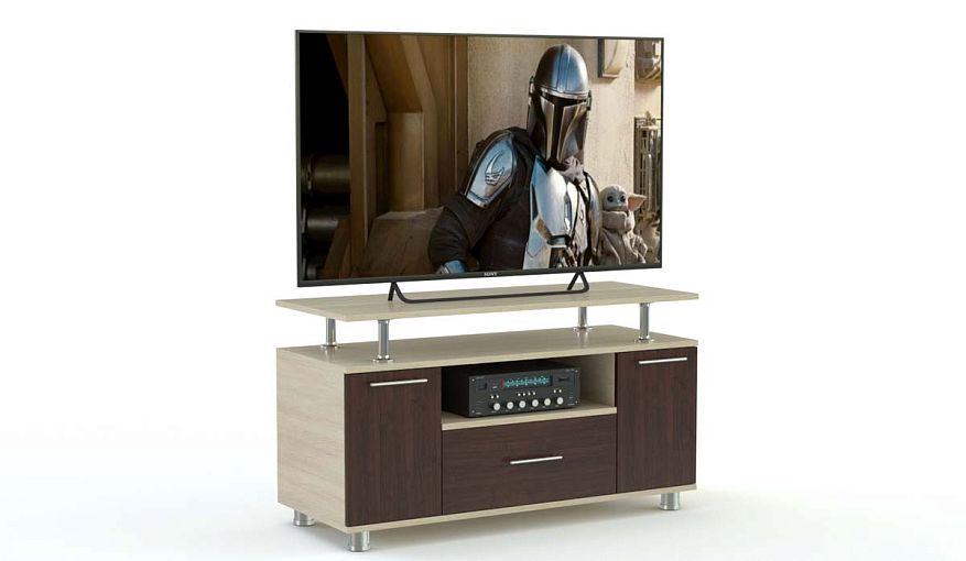 Тумба TV-15 BMS оборудована двумя распашными отделениями, выдвижным ящиком и нишей, а подставка для телевизора опирается на легкие и прочные хромированные стойки. Строгий современный дизайн и разнообразие оттенков позволяют органично вписать тумбу в интерьер гостиной. Круглые металлические ножки обеспечивают конструкции необходимую устойчивость. Купить тумбу TV-15 BMS для размещения аппаратуры, книг и всевозможных мелочей вы сможете в нашем интернет-магазине.