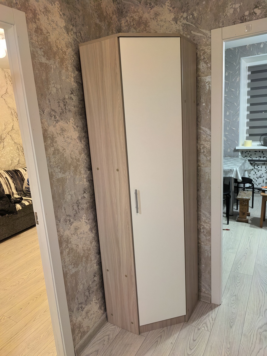 Долго искали шкаф подходящего размера, остановились на угловом.  Несмотря на компактные размеры- вместительный, качественные материалы и фурнитура. Удобный в использовании. Экономит пространство- для небольших комнат, можно подогнать под свои размеры. Доставка вовремя. В назначенный день приехали два сборщика с инструментами, собрали быстро . Сборкой осталась довольна, спасибо! Получился отличный шкаф. Покупкой довольны.