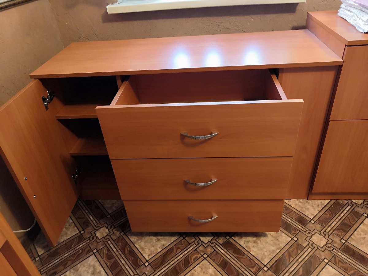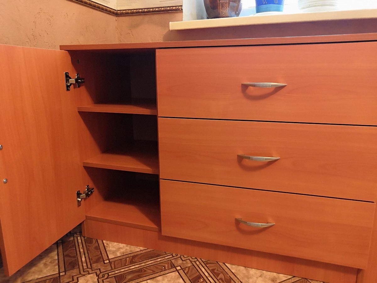 Тумбу приобретал как част гарнитура (фото). Все отлично подошло и прекрасно смотрится в дачном интерьере! Удобная форма заказа, быстрое изготовление и доставка. Все качественно.