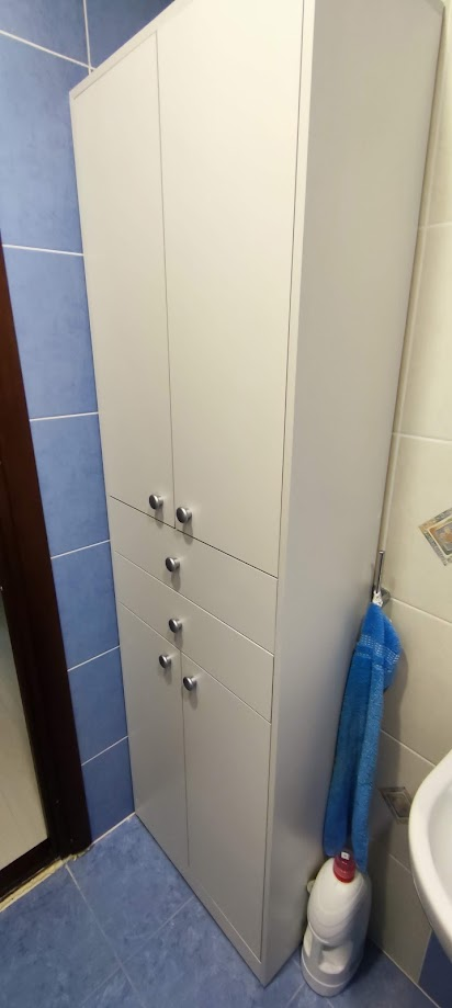 Понравилась конструкция. Заменила столешницу и фасады ящиков на мдф. Все сделали.Одно отверстие с столешнице под шкант было просверлено не там. Боковинки ящиков все сделаны на правую сторону, поэтому немножко пришлось со сборкой ящиков повозиться, чтобы перекоса не было.