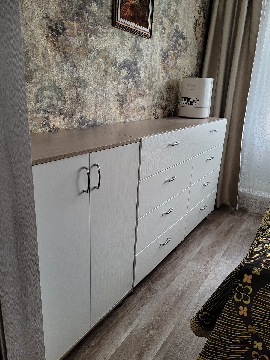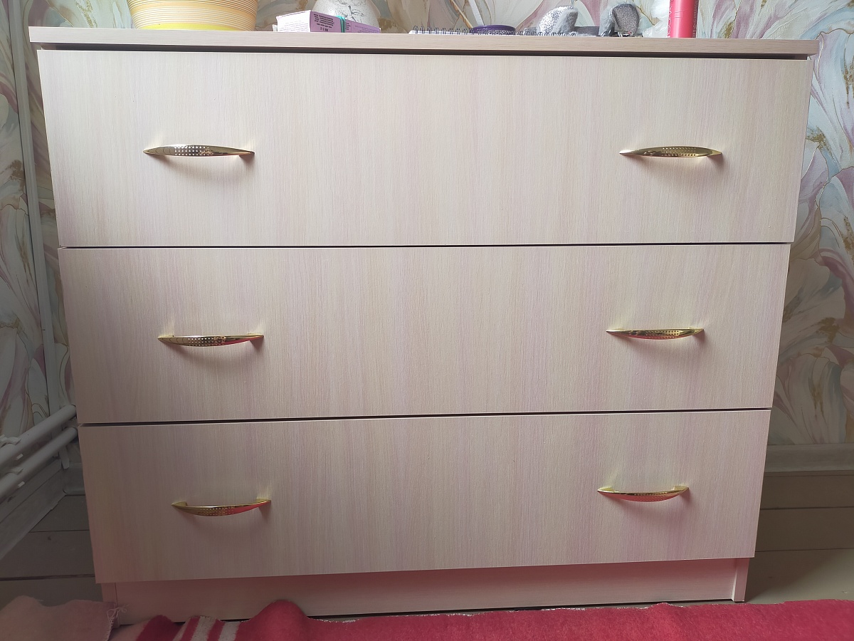 Заказ 00000694204, изделие ЭСКИЗ №00000694204 Комод Нордли Nordli 11 (1500х990х470)Были куплены изначально шкафы - цвет золотой дуб крафт у другого производителя. На разных сайтах искала возможность изготовить комод такого же цвета по своим размерам (стоимость получалась дороже, чем я отдала за шкафы )). Случайно наткнулась на бестмебель. Выбрала цвет, свой размер и то, что хочу. Т.к. основной критерий- ящики для нижнего белья и полки для хранения постельного белья и подушек. Единственное, что докупила отдельно - ручки. Т.к. у шкафов уже ручки были. Привезли всё в срок, мой папа собрал его. Я очень довольна .