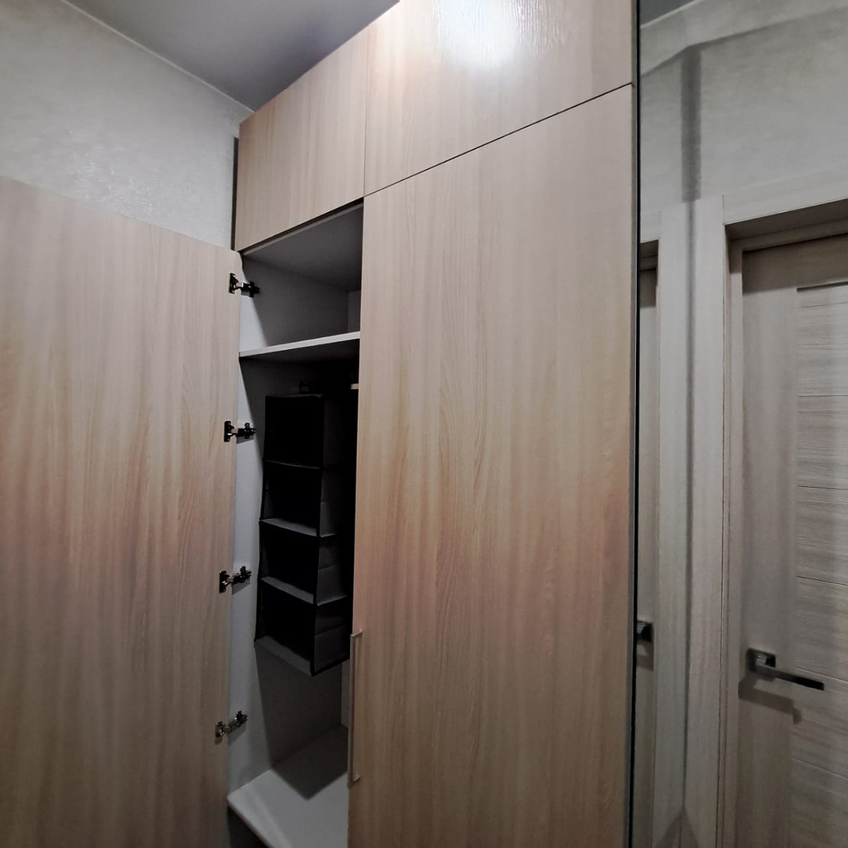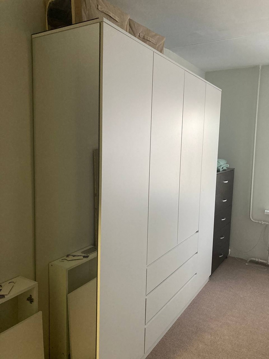 За свои деньги неплохой шкаф. Заказали размер 200х210, тк грузового лифта нет, а в пассажирский больше не поместится. Дополнительно взяли зеркало на боковину. Из минусов неприятный запах и незначительные сколы (их не видно).