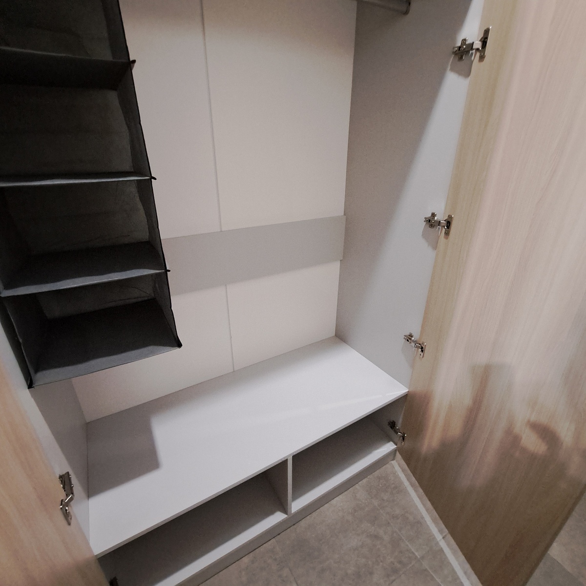 Купили шкаф в маленький коридор. Хорошо вписался, на боковой стенке разместили зеркало, что тоже сэкономило пространство и визуально расширило коридор. Сборщик быстро собрал. Шкафом довольна.