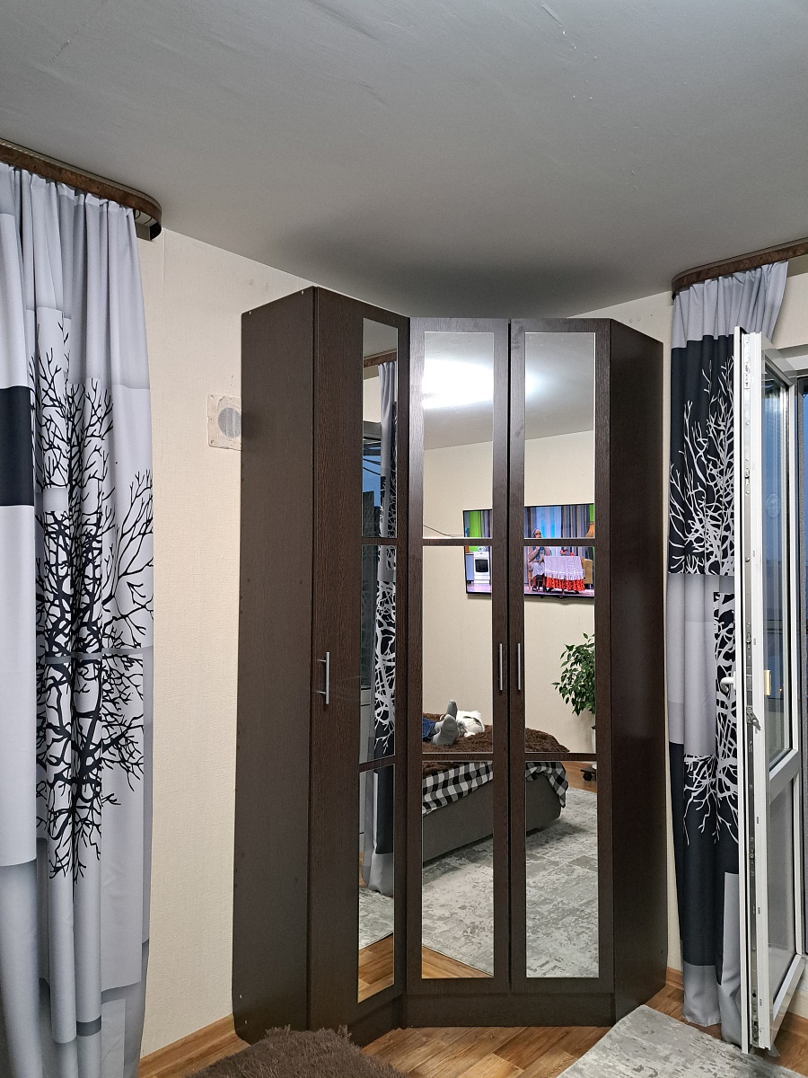 Хороший шкаф. Вместительный. При составлении заказа шкаф был без ножек, но привезли шкаф с ножками и вариант с ножками больше понравился. В отделениях со штангами, добавила ещё по одной штанге. На дверях зеркало не приклеено, сама дверь из зеркала, неожиданно было. Так что, если зеркало вдруг разобьется, будет дыра. Для бюджетного варианта качество хорошее.