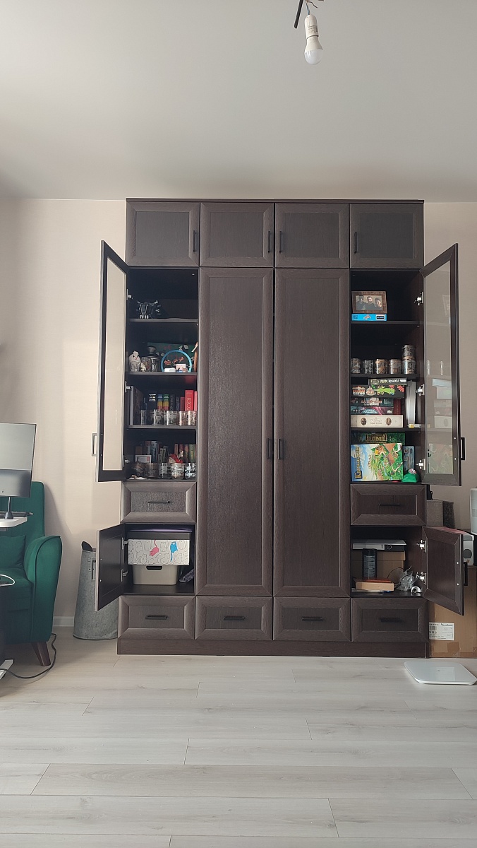 Отличный шкаф! Поместились вещи мои и мужа. Здорово, что здесь можно выбирать свои размеры и дополнительные полки/фурнитуру. Привезли через 5 дней с моими «желаемыми переделками»